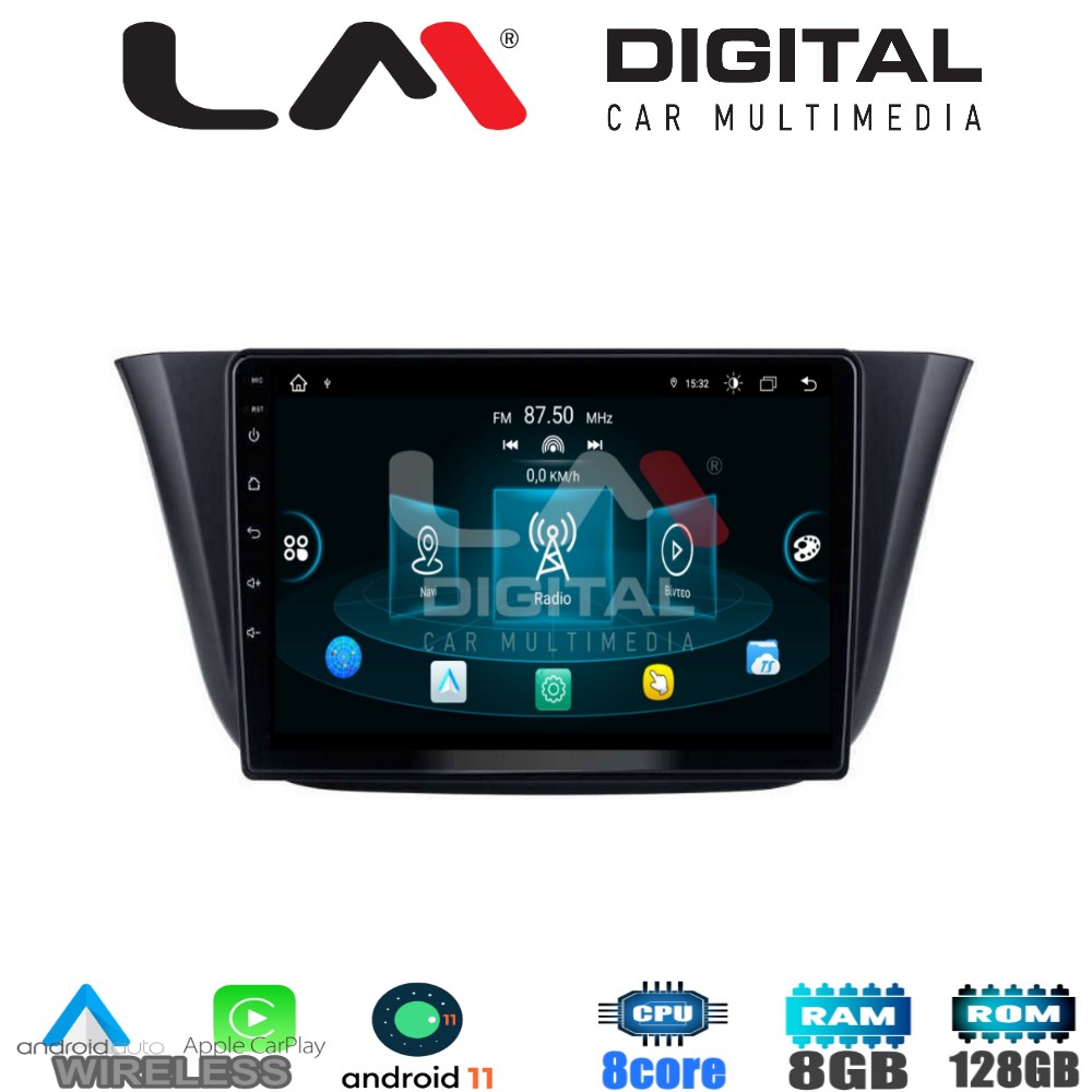 ΟΕΜ οθόνη 9'' με λογισμικό Android 11, 8 πύρηνο επεξεργαστή, 8Gb Ram μνήμη, με ενσωματωμένο σύστημα πλοήγησης και ασύρματο Apple Car Play/Android Auto.