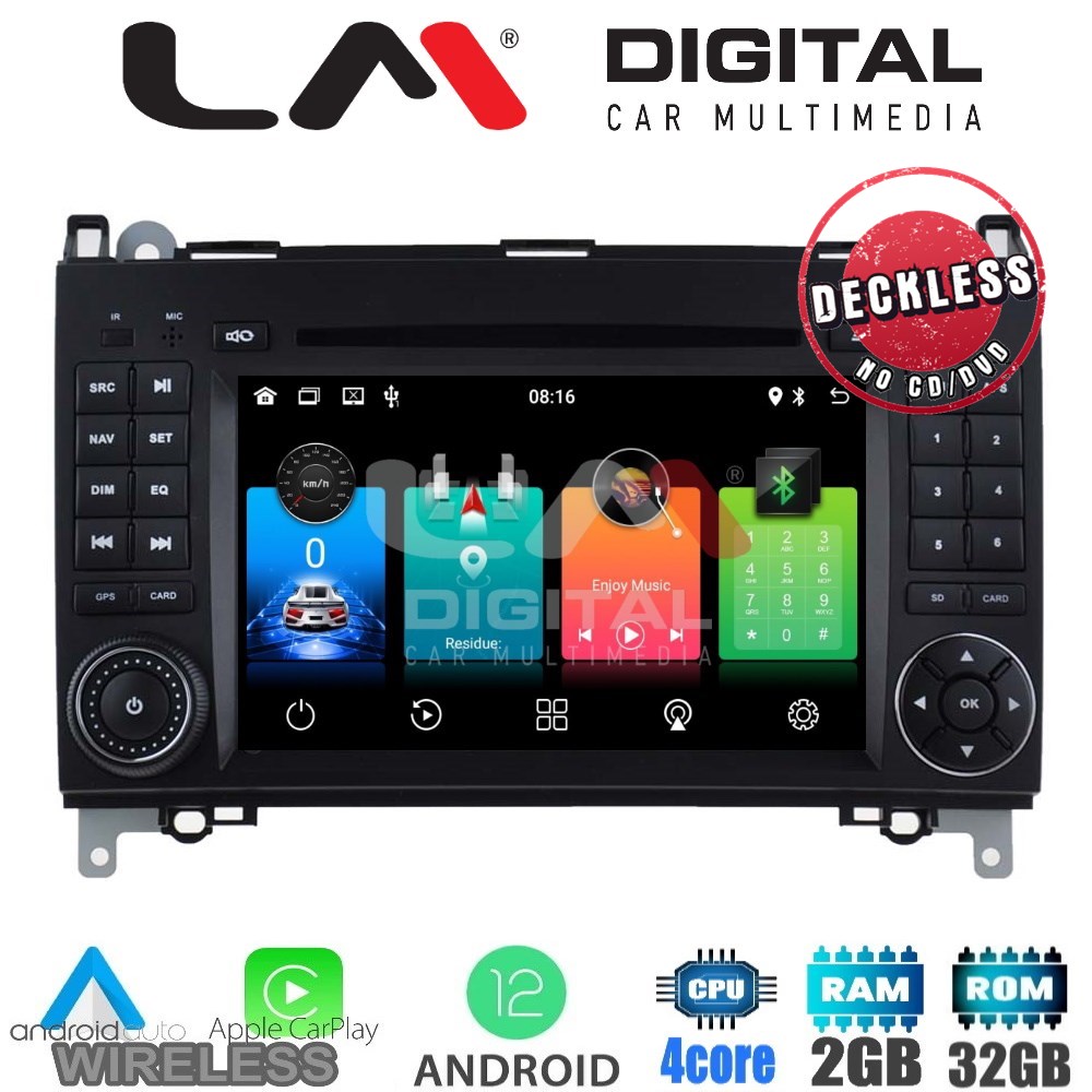 ΟΕΜ οθόνη 7'' με λογισμικό Android 12, 4 πύρηνο επεξεργαστή, 2Gb Ram μνήμη, με ενσωματωμένο σύστημα πλοήγησης και ασύρματο Apple Car Play/ενσύρματο Android Auto.