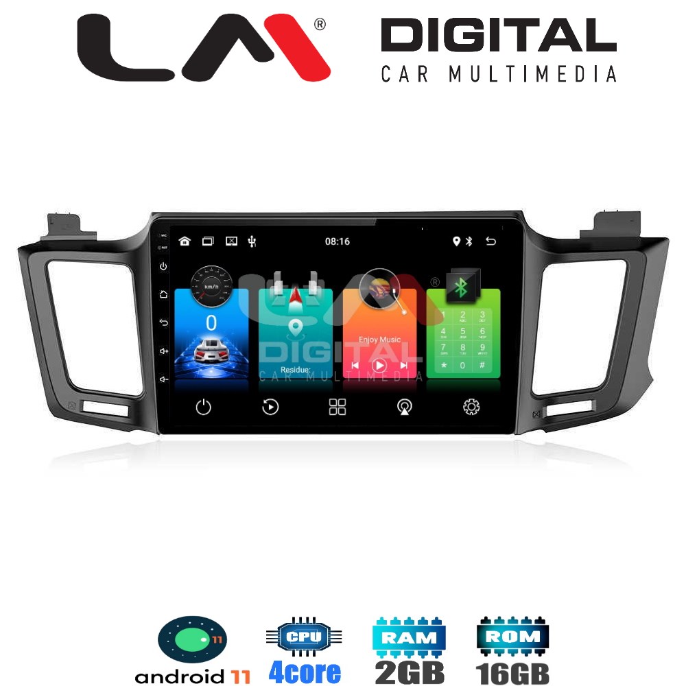Android 11, Οθόνη OEM 10'', για Toyota Rav4 από το 2013 έως το 2019, Capacitive HD Touchscreen, Resolution 1024 Χ 600 Pixels, 4 X 40 Watt, με 4πύρηνο επεξεργαστή και 2Gb Ram.