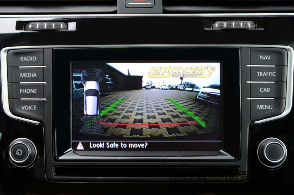 The camera starts working as soon as you put your car into reverse gear. It shows the area behind your car on your radio or radio navigation system display offering you a clear reversing image with easy-to-follow guidelines. Superimposed graphic lines guide you to the optimal steering lock, guaranteeing fuss-free, smooth parking.