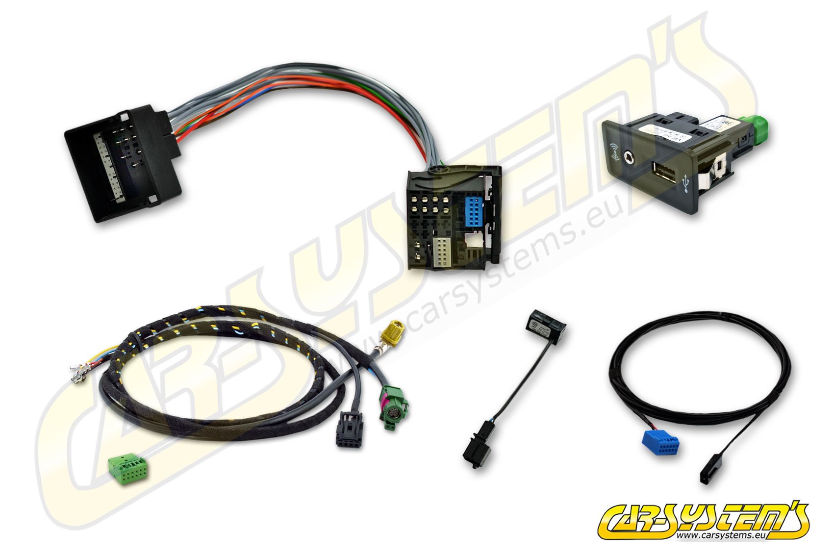 Quadlock Adapter for MQB MIB Head Units + USB AUX IN + Bluetooth + MIC + socket 5G0035222E VW Connection Cable SET - MIB radio navigation unit - retrofit