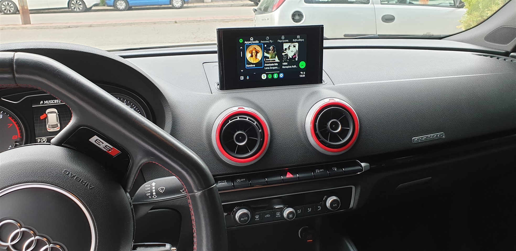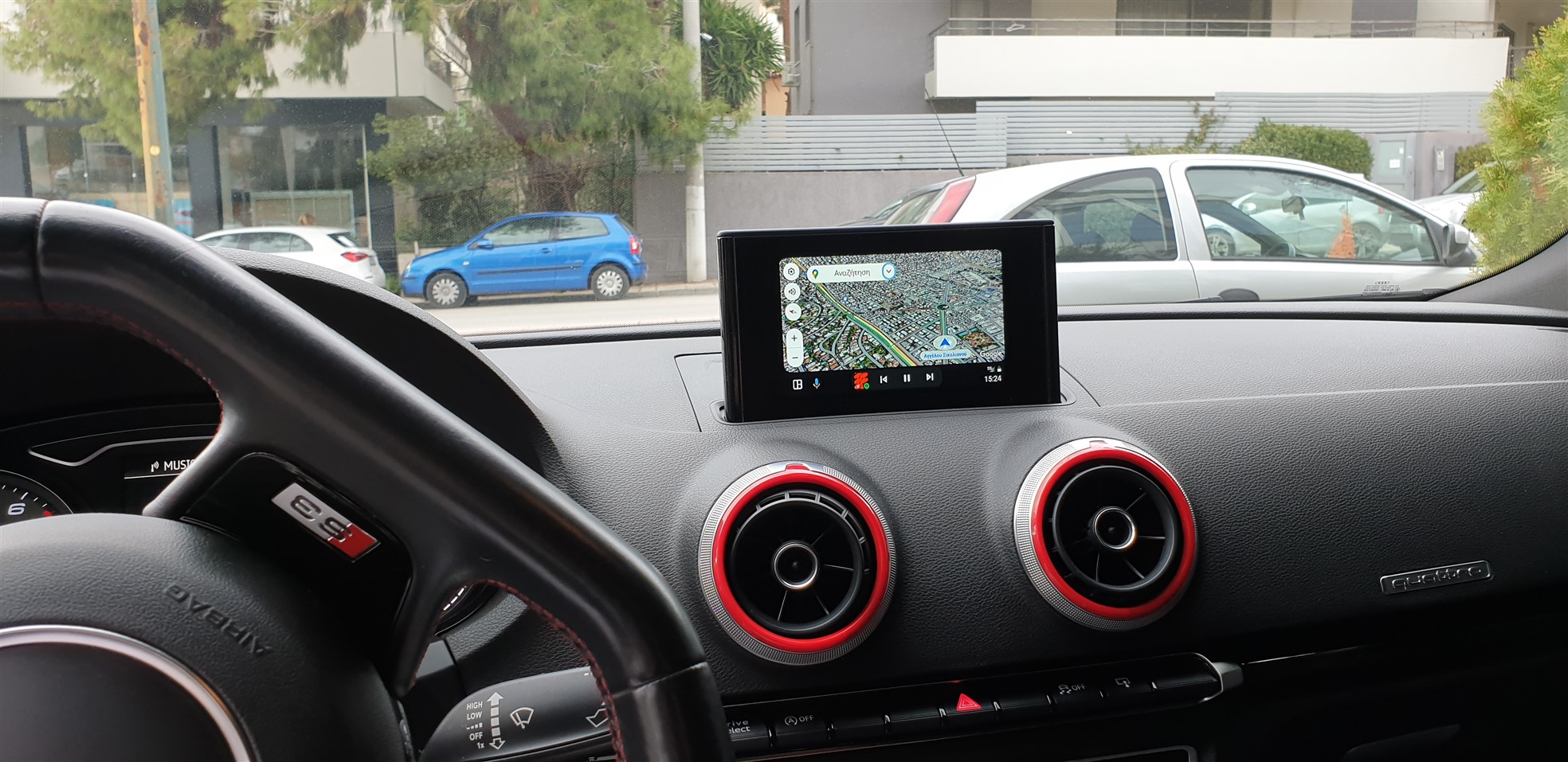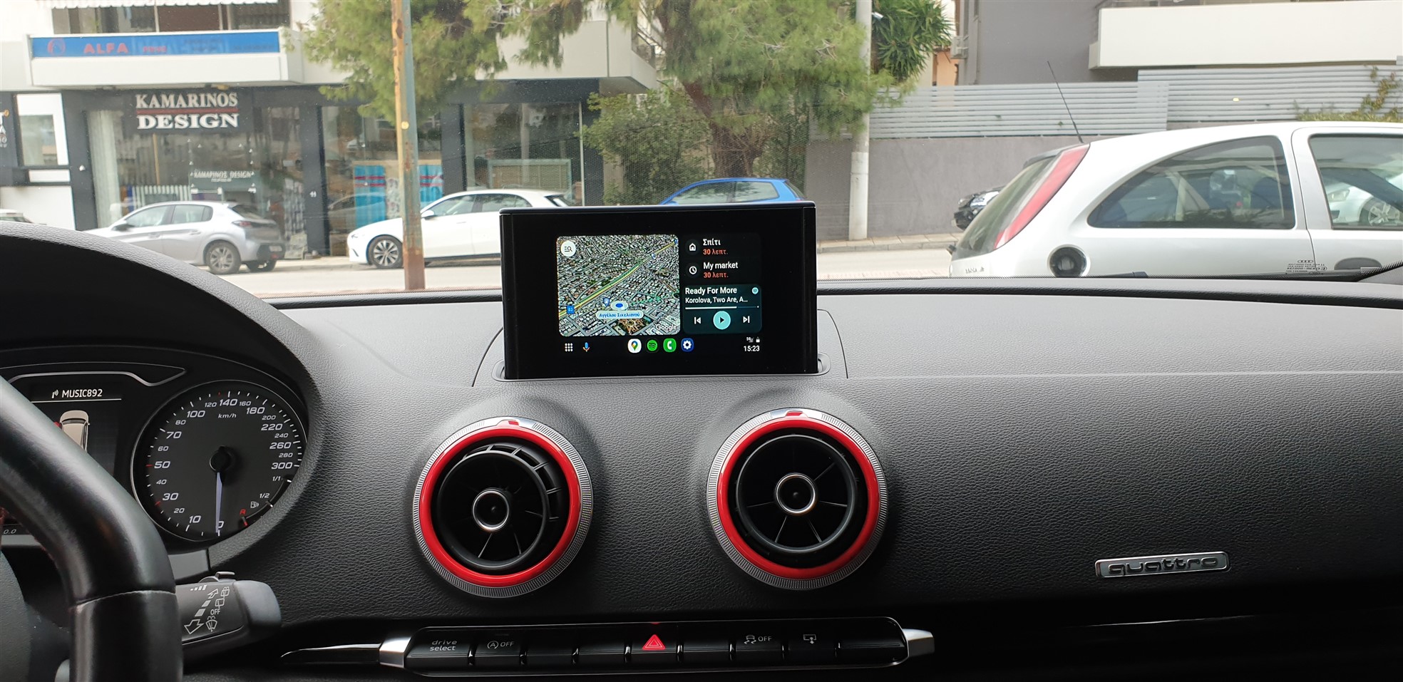 Αναβάθμιση της εργοστασιακής οθόνης σε A3/S3 8V με Apple Car Play, Android Auto και κάμερα οπισθοπορείας. Ο χειρισμός των εφαρμογών ειναι μέσω του εργοστασιακού MMi και για συσκευές ios μέσω Wireless. H εγκατάσταση είναι plug and play και απαιτείται εργασία μιας ωρας. Διαθέσιμο για αυτοκίνητα BMW-Mercedes-Porsche-Mini-Audi-Toyota-Peugeot-Citroen.