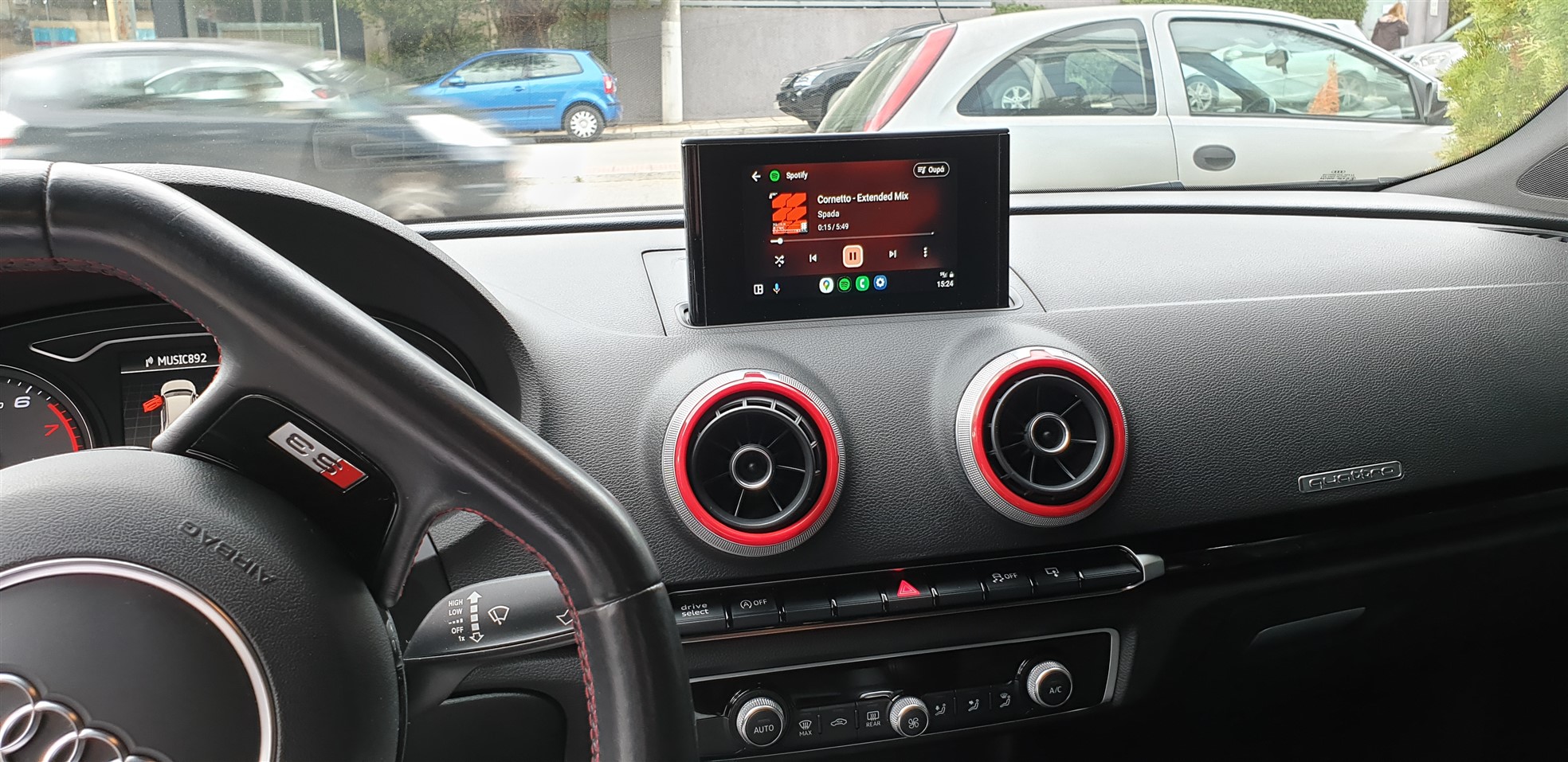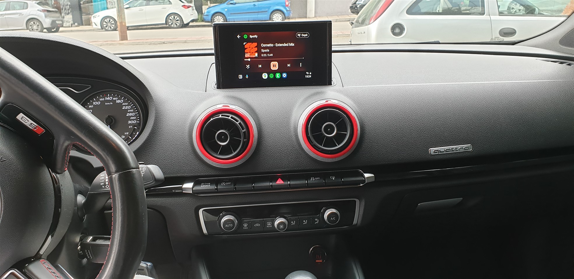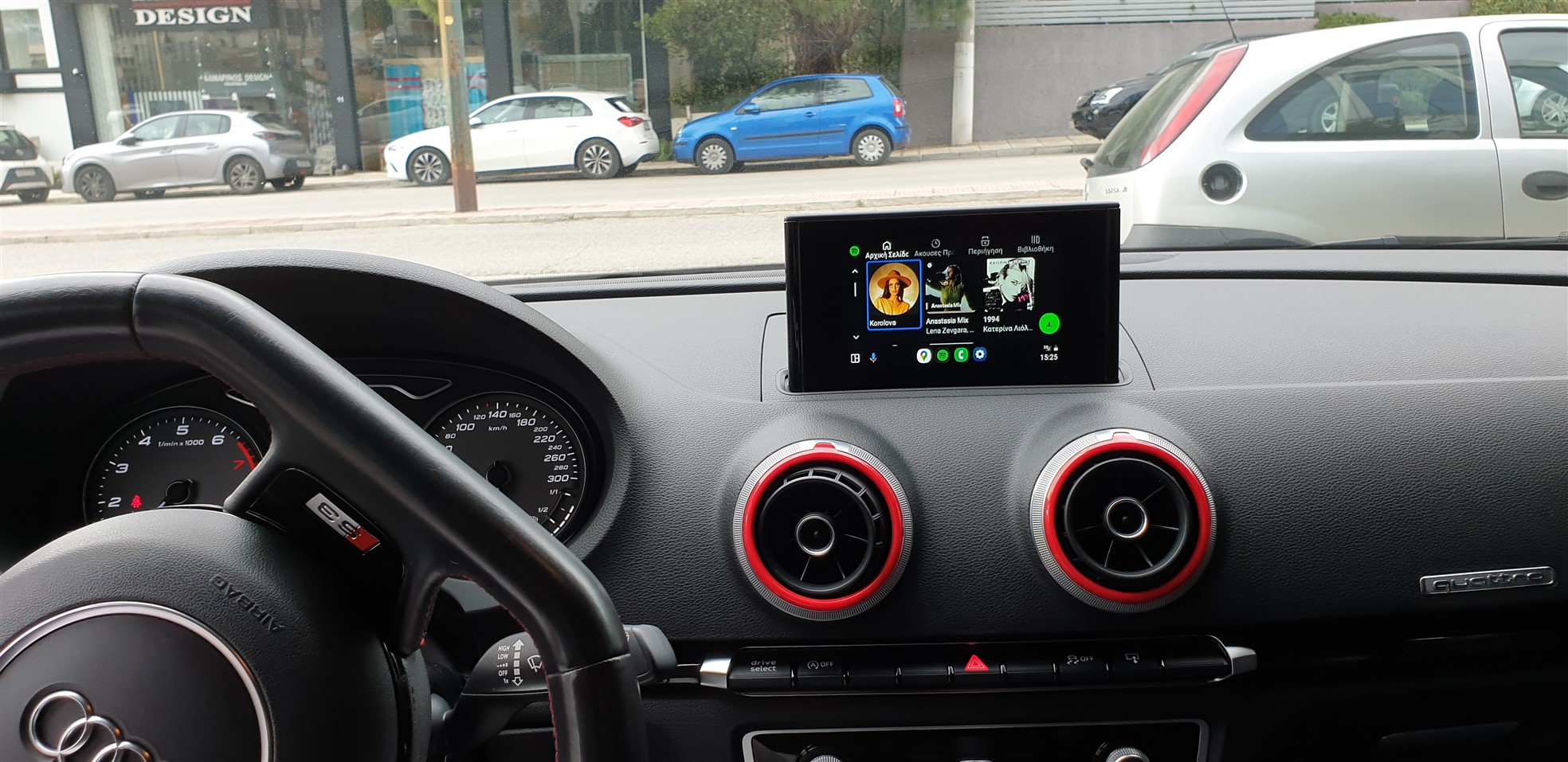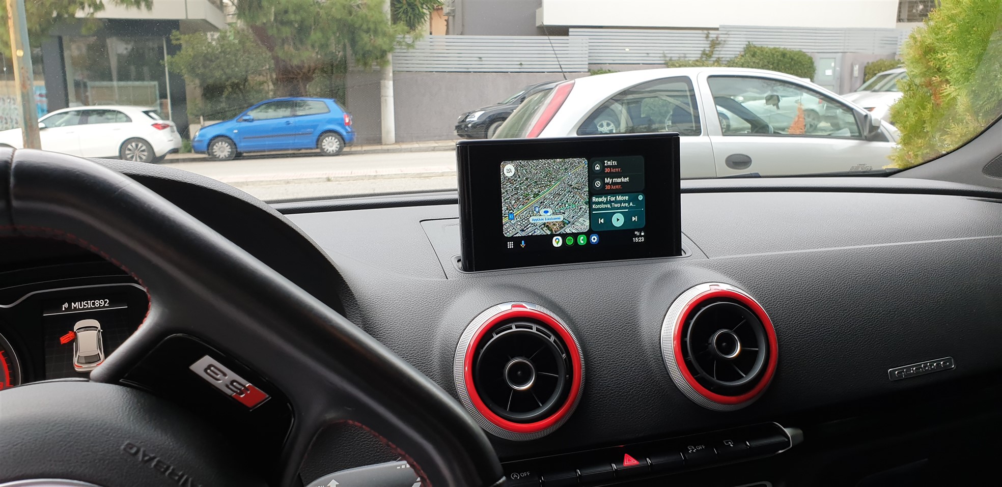 Αναβάθμιση της εργοστασιακής οθόνης σε A3/S3 8V με Apple Car Play, Android Auto και κάμερα οπισθοπορείας. Ο χειρισμός των εφαρμογών ειναι μέσω του εργοστασιακού MMi και για συσκευές ios μέσω Wireless. H εγκατάσταση είναι plug and play και απαιτείται εργασία μιας ωρας. Διαθέσιμο για αυτοκίνητα BMW-Mercedes-Porsche-Mini-Audi-Toyota-Peugeot-Citroen.