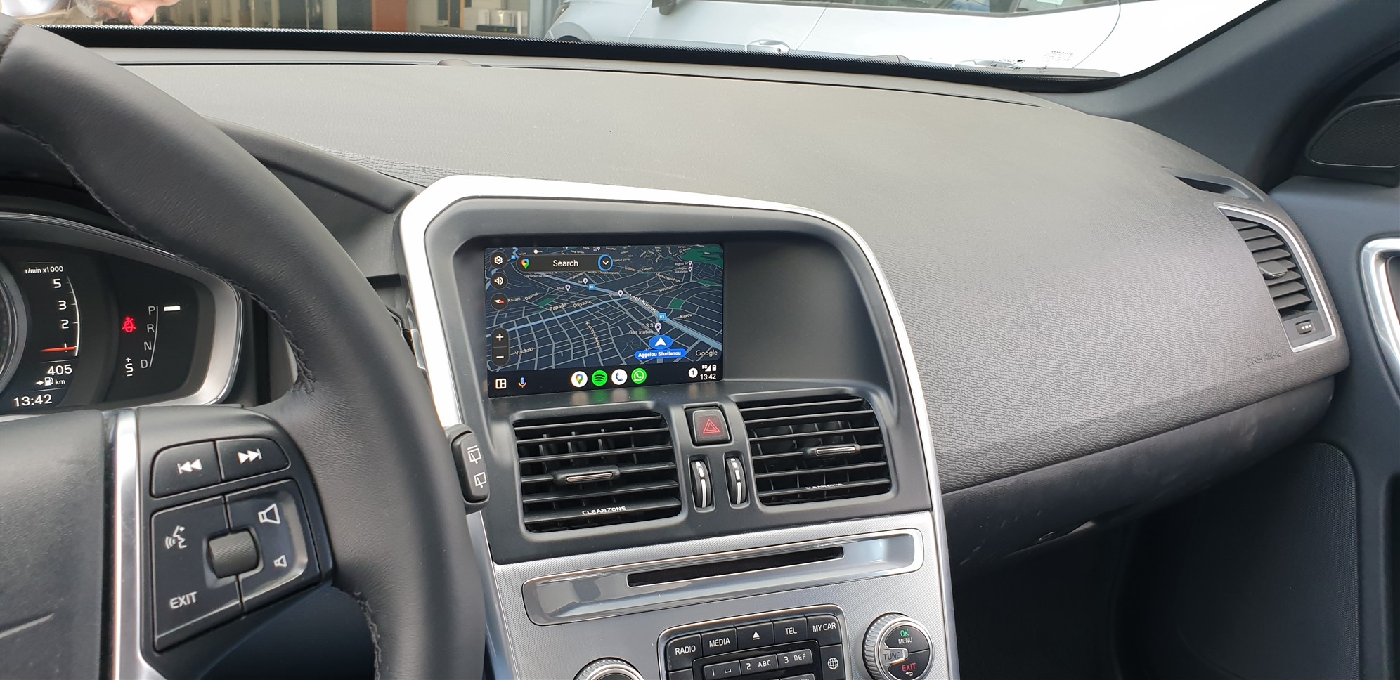 Αναβάθμιση της εργοστασιακής οθόνης σε Volvo Xc 60 με Apple Car Play, Android Auto και Media Player. Ο χειρισμός των εφαρμογών ειναι μέσω του εργοστασιακού Menu και για συσκευές ios & Android η συνδεση ειναι Wireless. O ηχος αναπαραγεται μέσω του εργοστασιακού Bluetooth Audio η μέσω Aux In. H εγκατάσταση είναι plug and play και απαιτείται εργασία μιας ωρας. Διαθέσιμο για αυτοκίνητα BMW-Mercedes-Porsche-Mini-Audi-Toyota-Peugeot-Citroen.