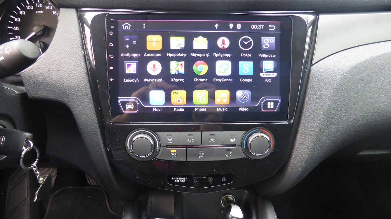 Eγκατάσταση οθόνης 10,1” Nissan Qashqai. Διαθέτει ενσωματωμένο Navigation, λειτουργεί σε περιβάλλον Android 5.1, Bluetooth και όλα αυτά σε πολύ υψηλή ανάλυση 1024 x 600 Pixels. Υποστηρίξη Miracast για Android 4.2 & AirPlay για iPhone IOS 7.0 μέσω Wifi. Τα εργοστασιακά Control τιμονιού, καθώς επίσης και όλες οι λειτουργίες του αυτοκινήτου μέσω Obd εμφανίζονται στην κεντρική οθόνη.