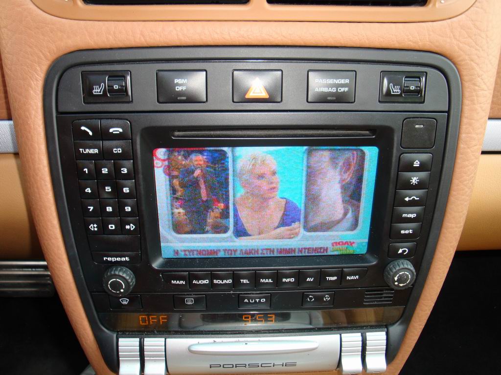 Eγκατάσταση TV Tuner και Unlock της εργοστασιακής οθόνης για εικόνα κατά την κίνηση του οχήματος. Παρέχεται η δυνατότητα προγραμμάτων τηλεόρασης στην κεντρική οθόνη καθώς επίσης και για τους πίσω επιβάτες. Όλα τα Monitor υποστηρίζουν την ανεξάρτητη παρακολούθηση προγραμμάτων τηλεοράσεως – DVD – Play Station. Η επιλογή του TV Tuner εμφανίζεται στην κεντρική οθόνη και επιλέγεται σαν λειτουργία. αλλά η αλλαγή των τηλεοπτικών καναλιών πραγματοποιείται από το Remote Control