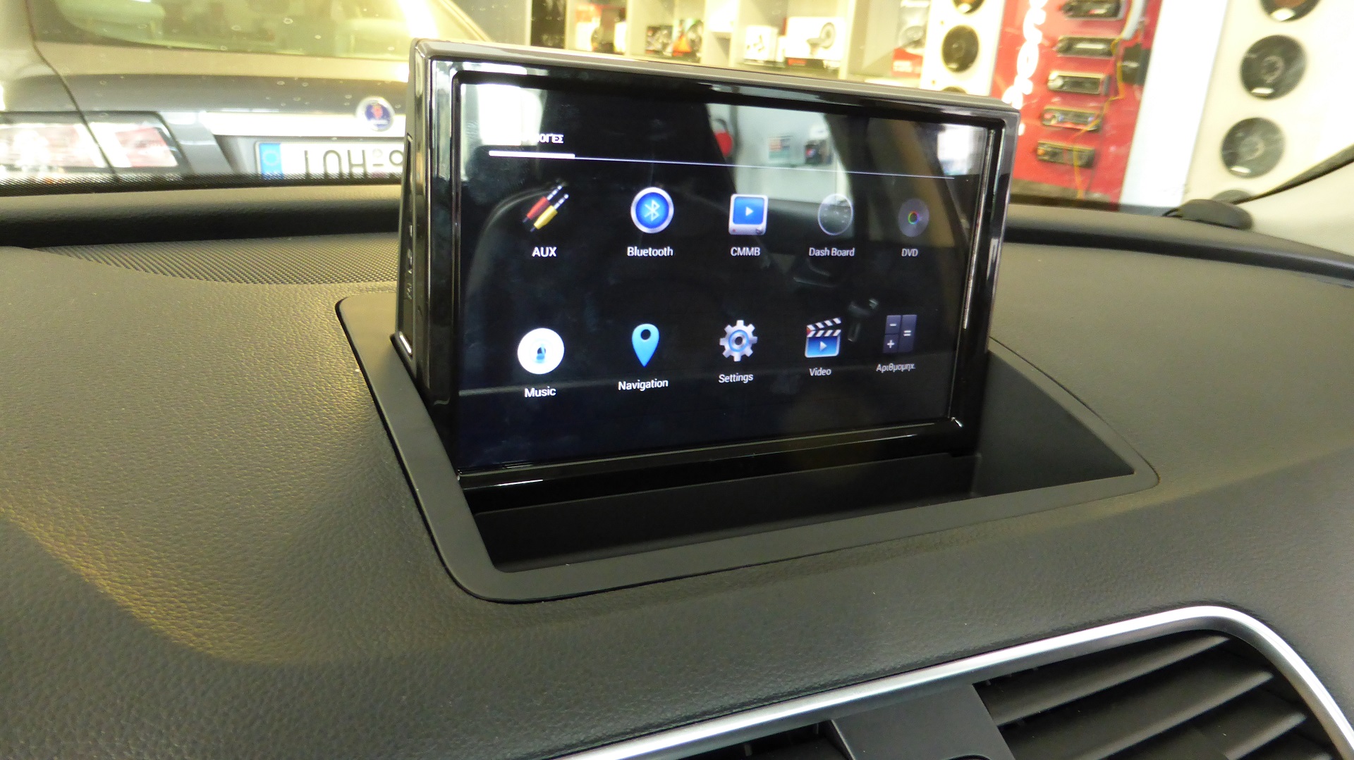 Audi Q3 Android Car Cinema. Αντικατάσταση της εργοστασιακής οθόνης και αναβάθμιση σε Android. Navigation με χάρτες I-Go 8, Bluetooth, MirrorLink.