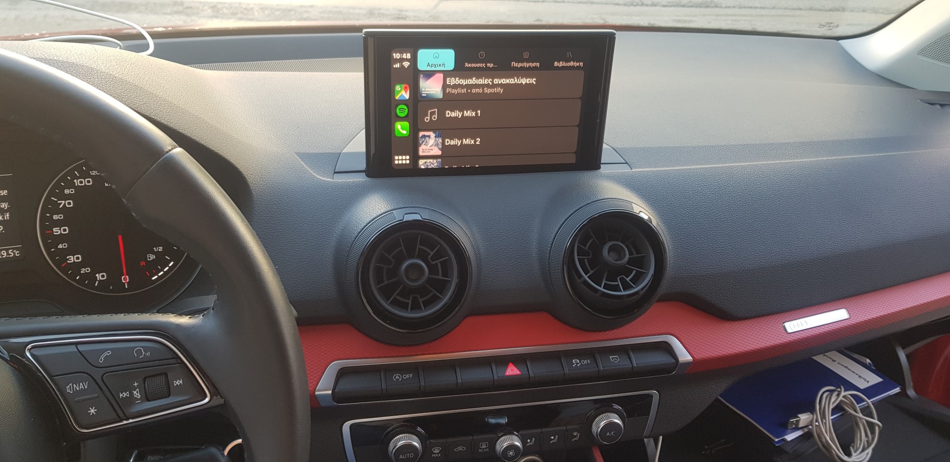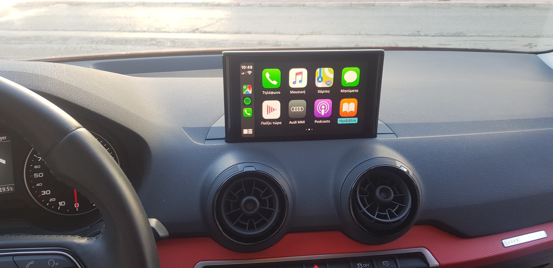 Αναβάθμιση της εργοστασιακής οθόνης σε Audi Q2 GA με Apple Car Play, Android Auto και κάμερα οπισθοπορείας. Ο χειρισμός των εφαρμογών είναι μέσω του εργοστασιακού MMi και για συσκευές ios μέσω Wireless. H εγκατάσταση είναι plug and play και απαιτείται εργασία μιας ώρας. Διαθέσιμο για αυτοκίνητα BMW-Mercedes-Porsche-Mini-Audi-Toyota-Peugeot-Citroen.