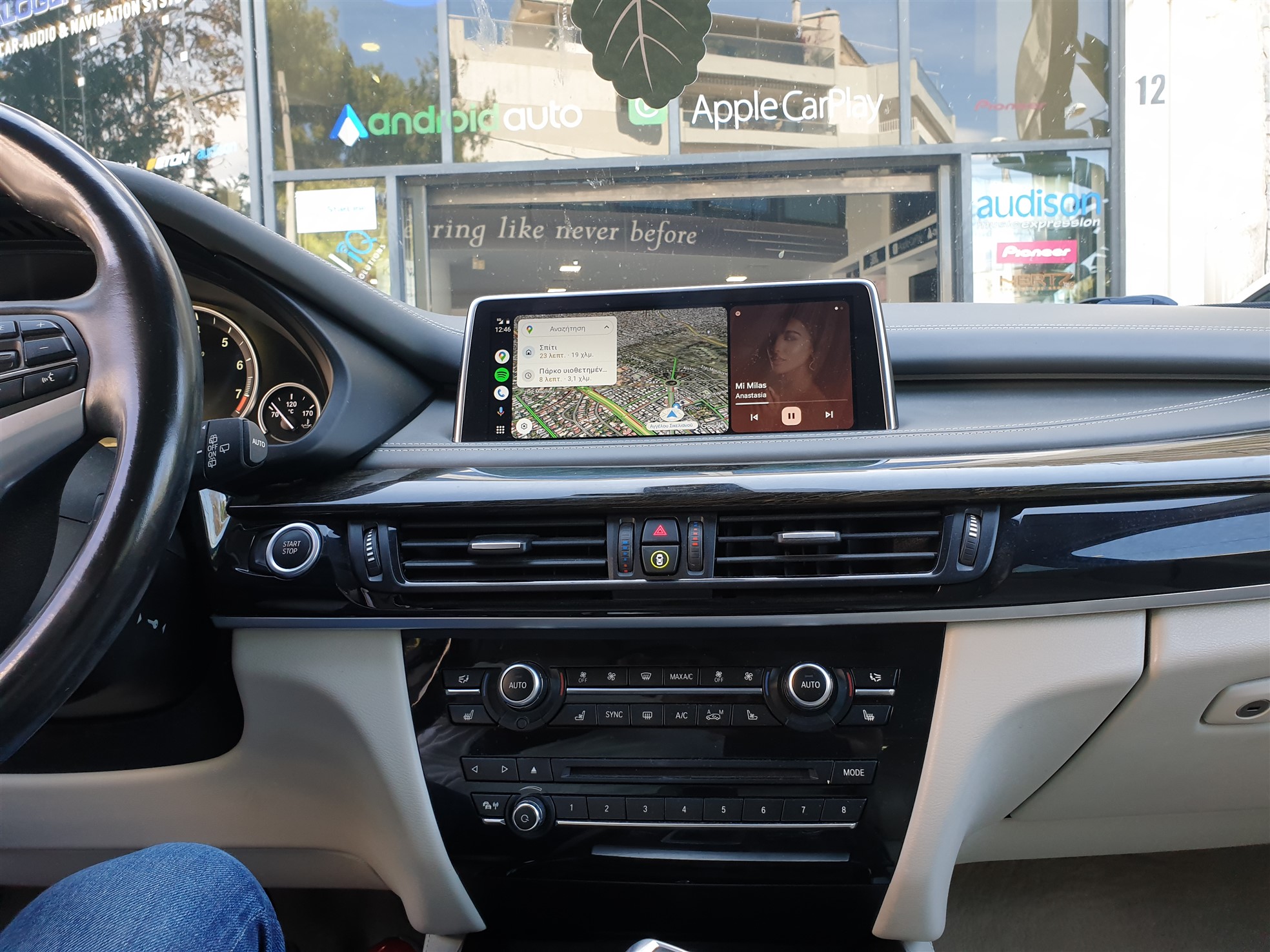 Wireless Apple Car Play, Android Auto κάμερα οπισθοπορείας και Media Player. Ο χειρισμός των εφαρμογών ειναι μέσω του I-Drive. Ο ηχος αναπαράγεται μέσω του Aux-In της εργοστασιακής πηγής και ο χρόνος που απαιτείται για την εγκατάσταση ειναι 1 ωρα.