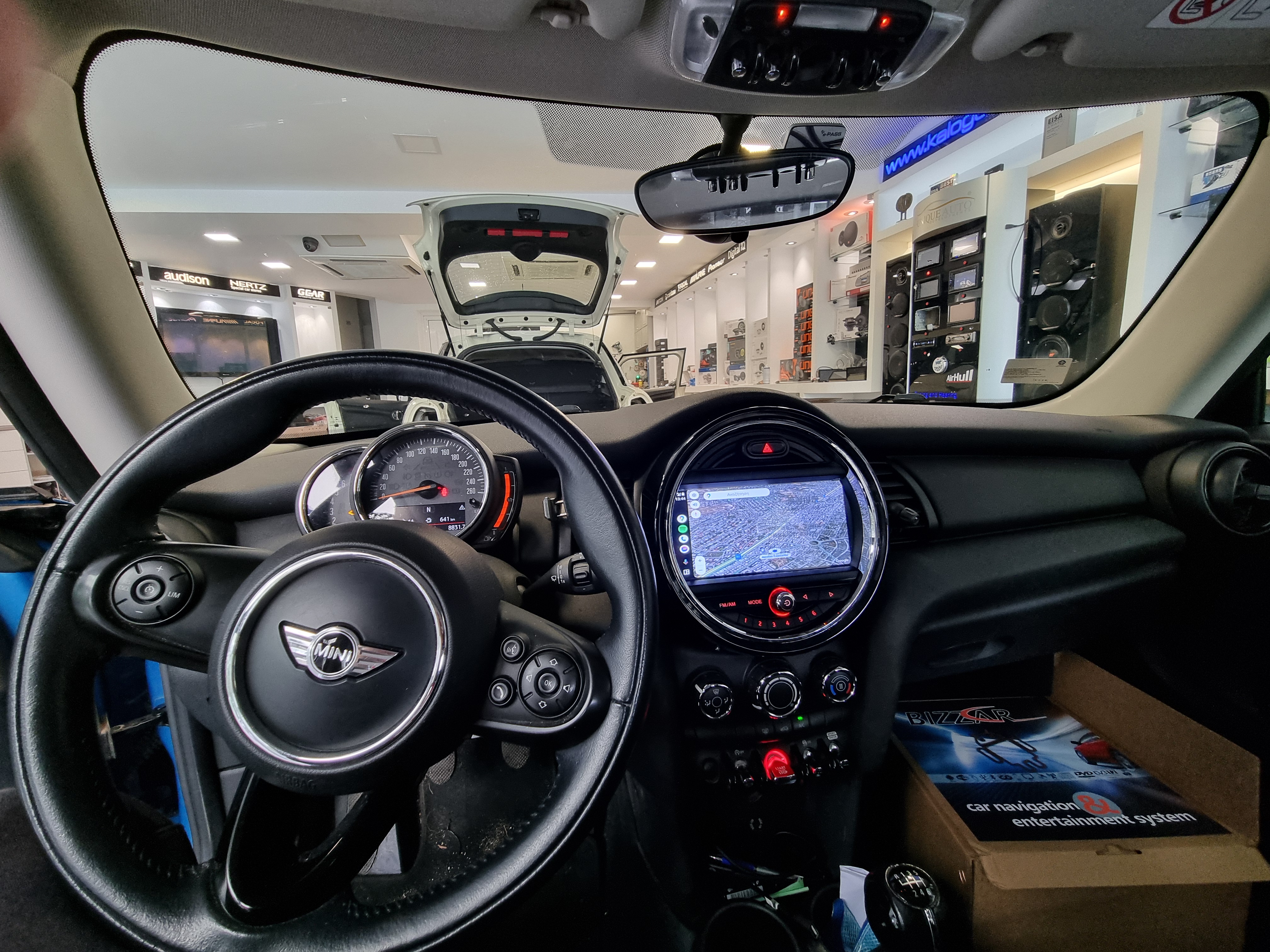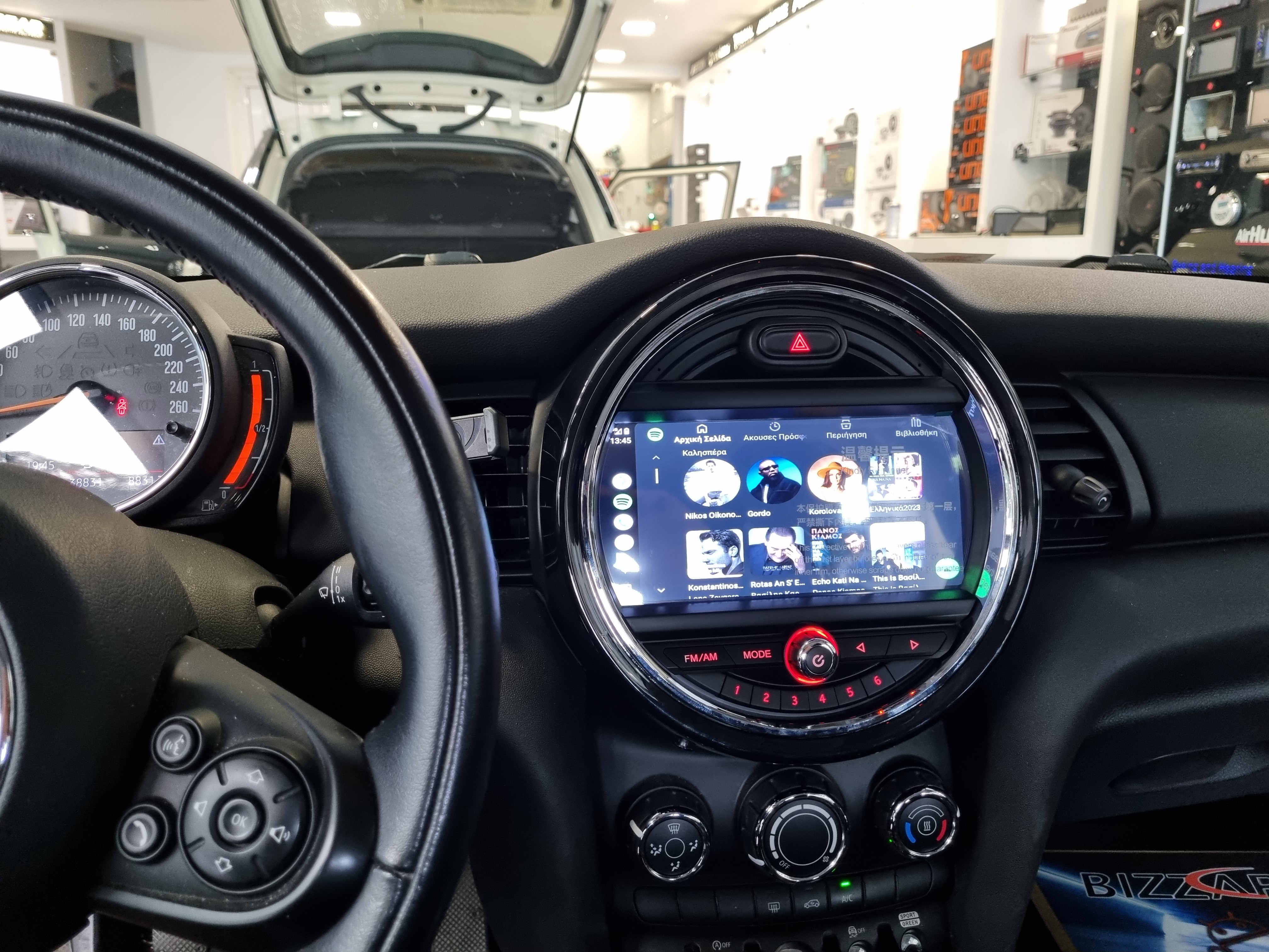 Αντικατάσταση της εργοστασιακής μονάδας ηχου, με οθόνη της Bizzar Android 13, Apple car play, Android Auto Wireless με 7χρωμο φωτισμό περιφερειακά της οθόνης ο οποίος λειτουργεί σύμφωνα με τα δεδομένα CanBus. Εγκατάσταση Parking Sensor της Med στις εργοστασιακές θέσεις εσωτερικά του προφυλακτήρα.