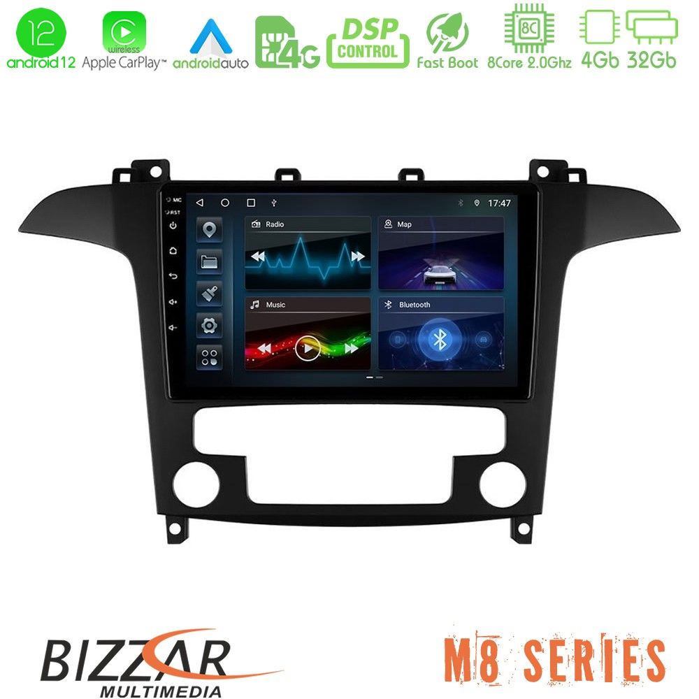 Bizzar M8 Series Ford S-Max 2006-2008 8core Android12 4+32GB Navigation Multimedia Tablet 9"