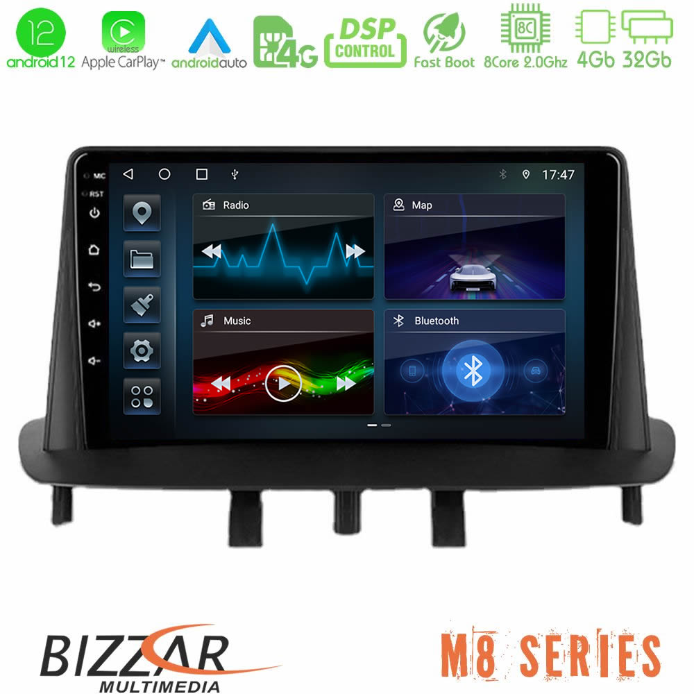 Bizzar M8 Series Renault Megane 3 2009-2013 8Core Android12 4+32GB Navigation Multimedia Tablet 9"