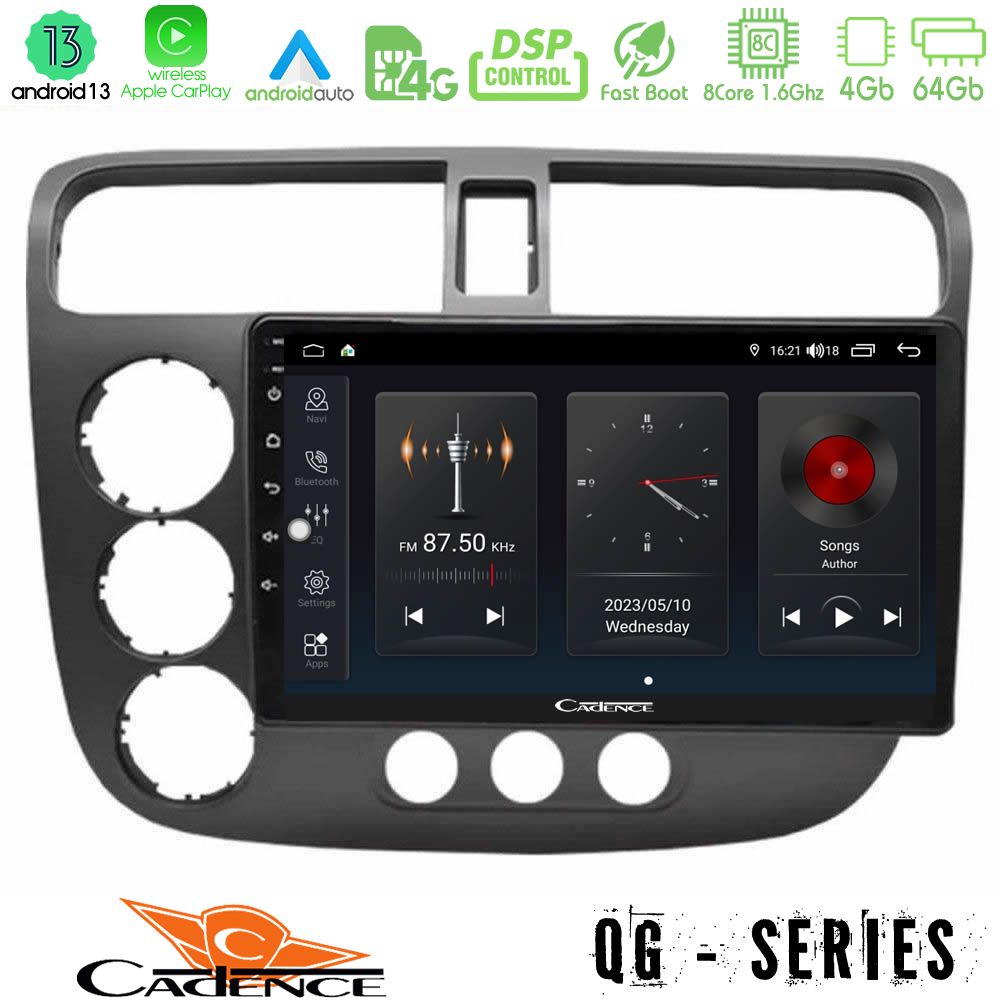 Cadence QG Series 8Core Android13 4+64GB Honda Civic 2001-2005 Navigation Multimedia Tablet 9"