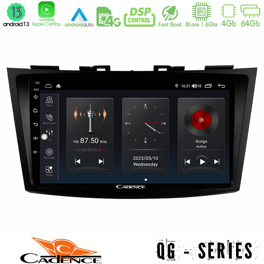 Cadence QG Series 8Core Android13 4+64GB Suzuki Swift 2011-2016 Navigation Multimedia Tablet 9"