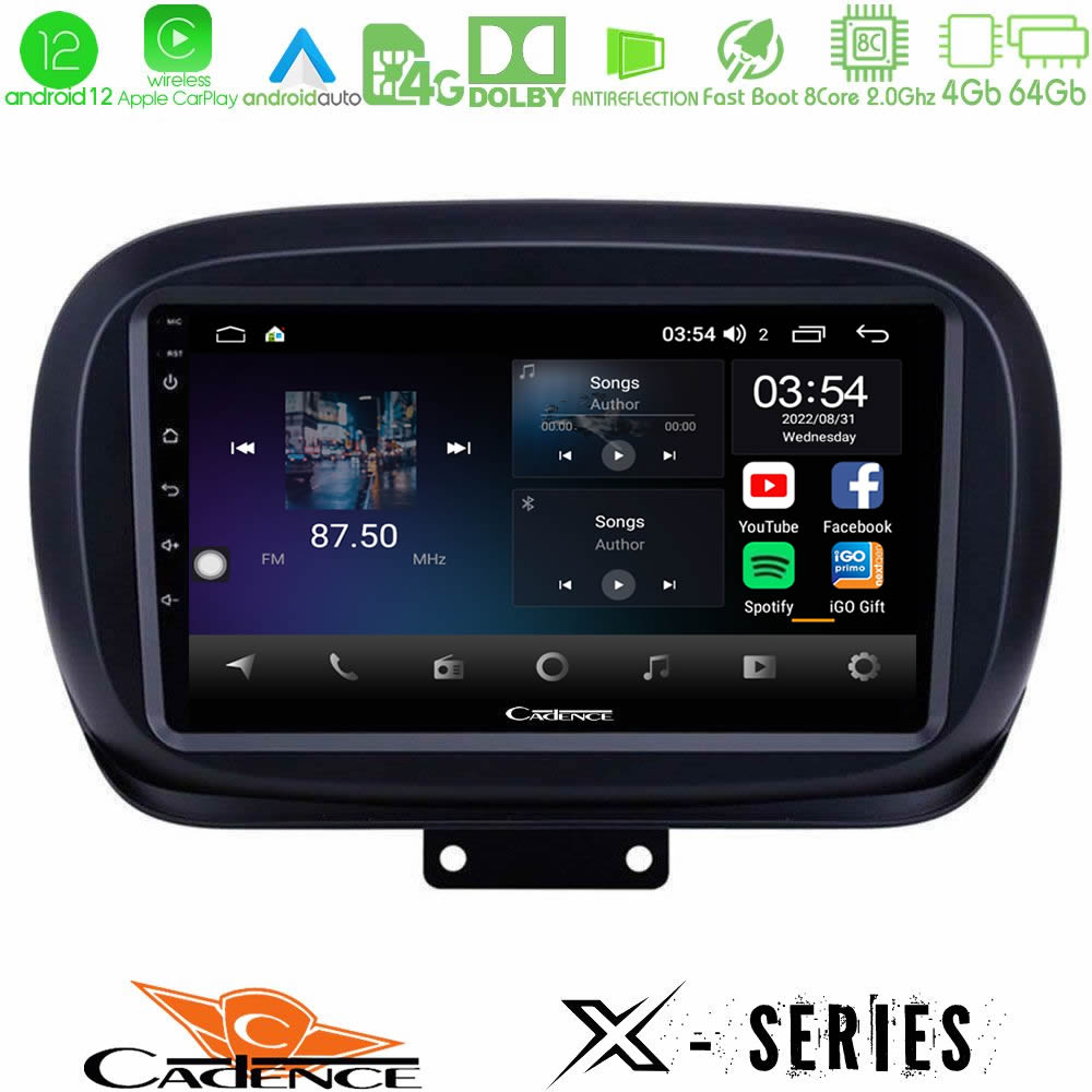 Cadence X Series Fiat 500X 8core Android12 4+64GB Navigation Multimedia Tablet 9"