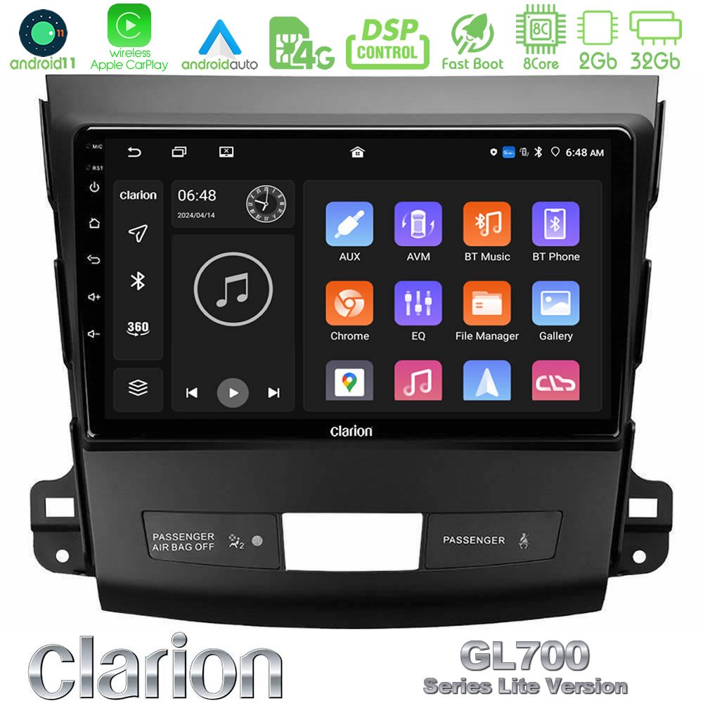 Clarion GL700 Lite Series 8Core Android11 2+32GB Mitsubishi Outlander/Citroen C-Crosser/Peugeot 4007 Navigation Multimedia Tablet 9" Με Carplay & Android Auto