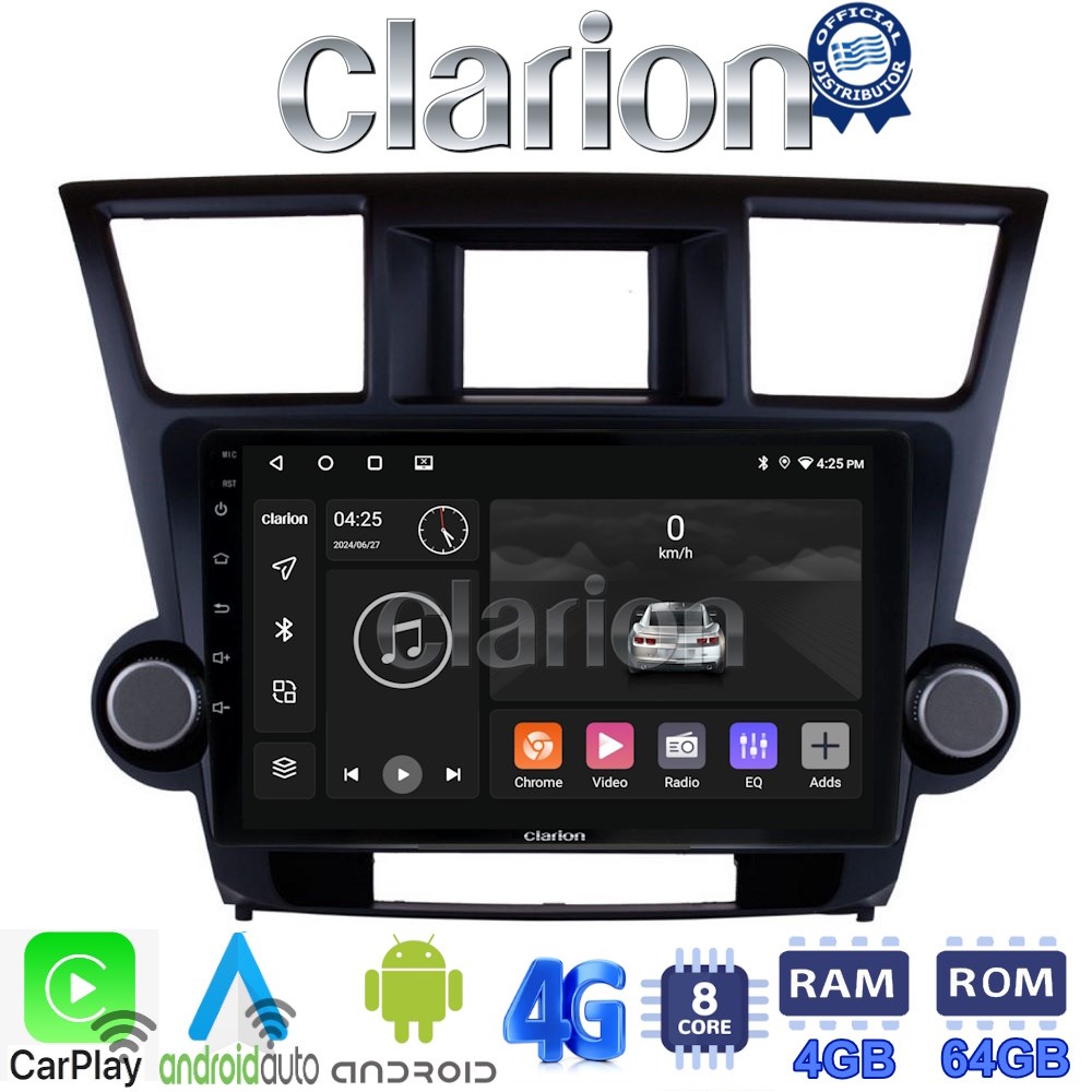 CLARION GL72089 Οθόνη OEM Multimedia Αυτοκινήτου για Toyota Highlander 2008 > 2015 (CarPlay/AndroidAuto/BT/GPS/WIFI/GPRS)