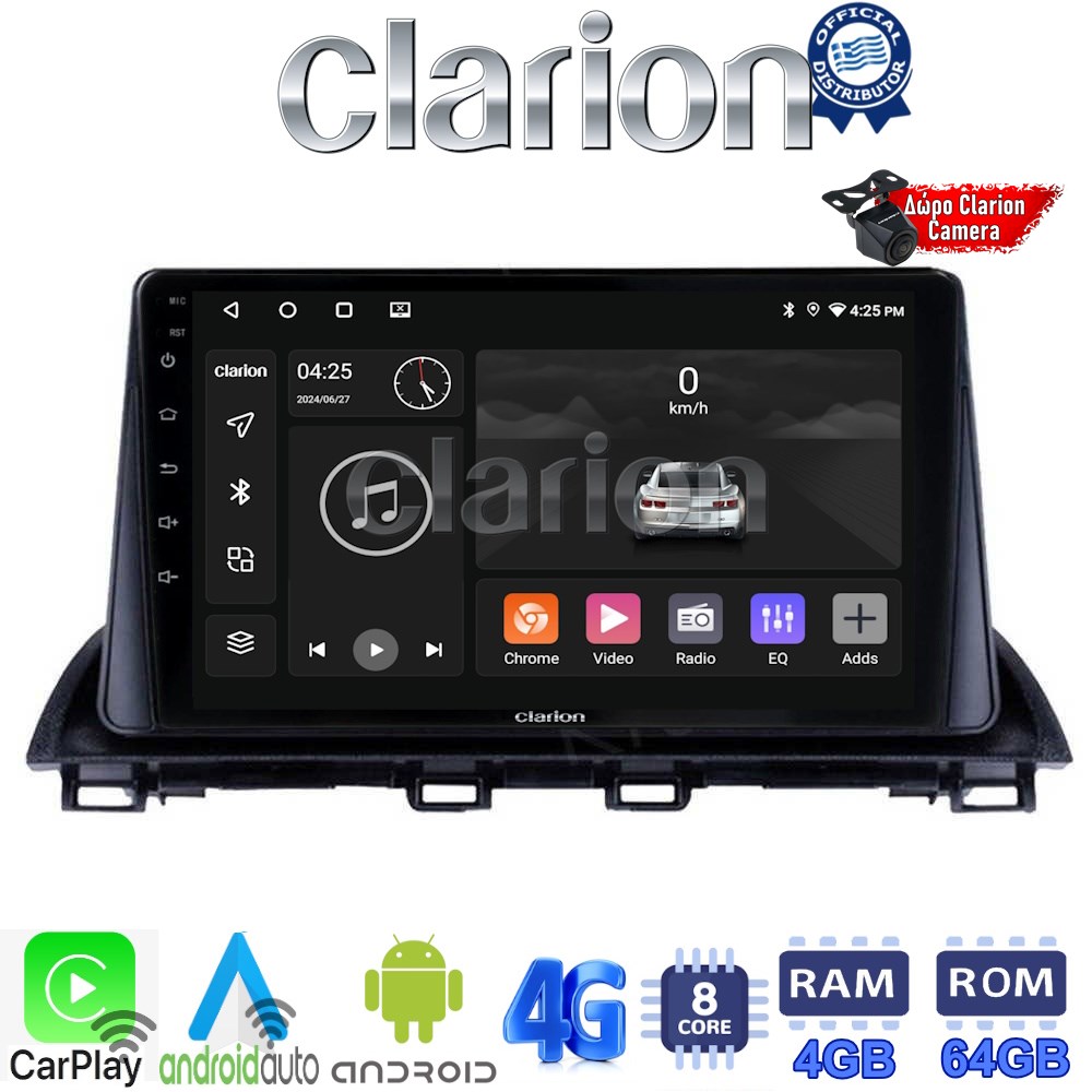 CLARION GL72461 Οθόνη OEM Multimedia Αυτοκινήτου για Mazda 3 2014 > (CarPlay/AndroidAuto/BT/GPS/WIFI/GPRS)