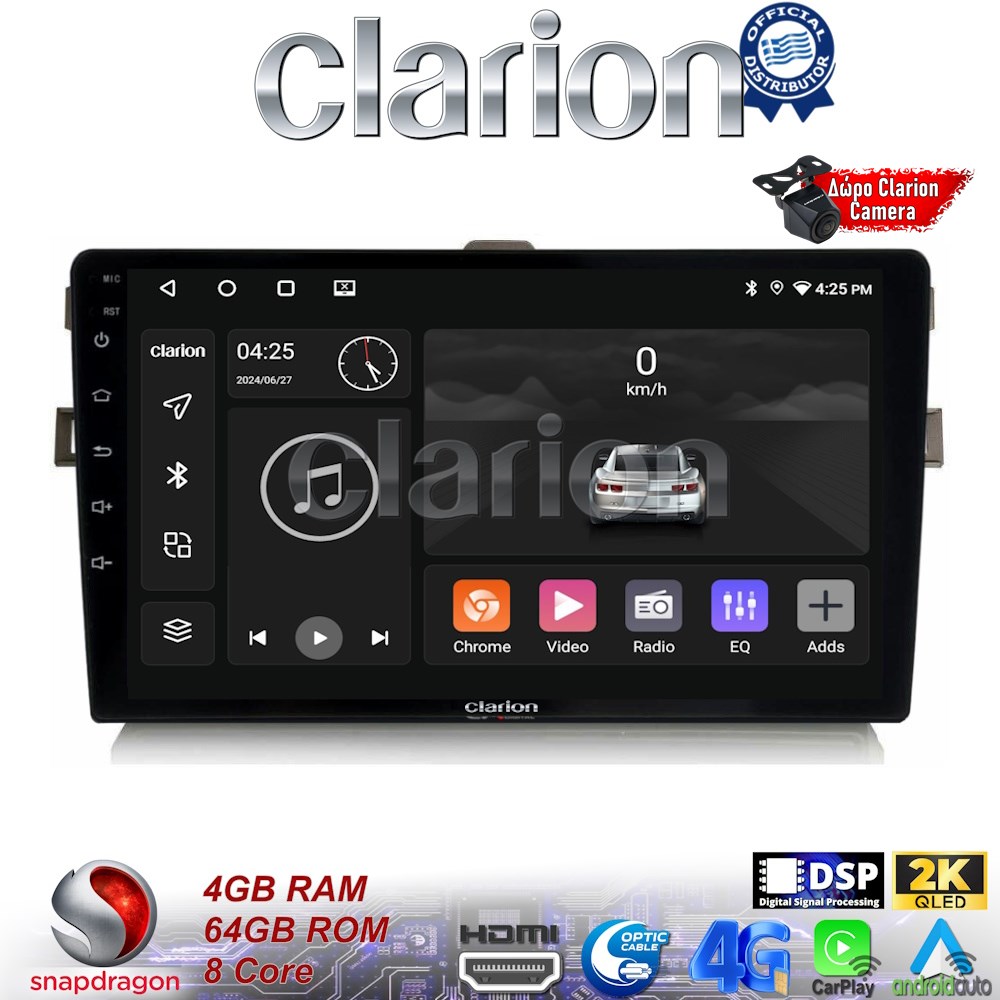 CLARION GL74028B Οθόνη OEM Multimedia Αυτοκινήτου για Toyota Auris 2007 > 2012 (CarPlay/AndroidAuto/BT/GPS/WIFI/GPRS)