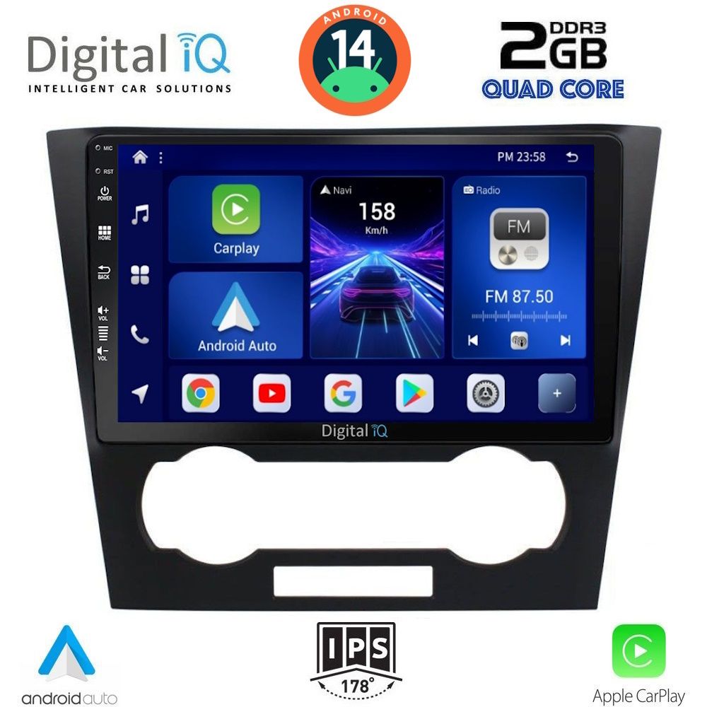 [vc_row equal_height="yes" margin_bottom="40px"][vc_column width="1/5"][vc_single_image source="external_link" external_img_size="170x170" alignment="center" css_animation="slideInDown" custom_src="https://digitaliq.gr/wp-content/uploads/2018/10/icon_cpu_170x170.png"][vc_custom_heading text="MTK 8227L Quad Core 1.3Ghz | 2GB DDR3 RAM | 32GB NAND FLASH STORAGE" font_container="tag:h6|text_align:center" spacing_heading="" spacing_heading_tab="" spacing_heading_mobile="" custom_heading_font_weight="600"][/vc_column][vc_column width="1/5"][vc_single_image source="external_link" external_img_size="170x170" alignment="center" css_animation="slideInDown" custom_src="https://digitaliq.gr/wp-content/uploads/2021/11/icon_android-170x170.png"][vc_custom_heading text="ANDROID 14 FAST LOADING 8sec" font_container="tag:h6|text_align:center" custom_heading_font_weight="600"][/vc_column][vc_column width="1/5"][vc_single_image source="external_link" external_img_size="170x170" alignment="center" css_animation="slideInDown" css="" custom_src="https://digitaliq.gr/wp-content/uploads/2024/10/icon_carplay_android-auto_certified_170.png"][vc_custom_heading text="LICENSED WIRELESS APPLE CARPLAY & ANDROID AUTO" font_container="tag:h6|text_align:center" custom_heading_font_weight="600"][/vc_column][vc_column width="1/5"][vc_single_image source="external_link" external_img_size="170x170" alignment="center" css_animation="slideInDown" custom_src="https://digitaliq.gr/wp-content/uploads/2018/10/eq_icon.png"][vc_custom_heading text="64 BAND EQUALIZER" font_container="tag:h6|text_align:center" custom_heading_font_weight="600"][/vc_column][vc_column width="1/5"][vc_single_image source="external_link" external_img_size="170x170" alignment="center" css_animation="slideInDown" custom_src="https://digitaliq.gr/wp-content/uploads/2018/10/rear_cam_icon.png"][vc_custom_heading text="FRONT & REAR CAMERA SUPPORT" font_container="tag:h6|text_align:center" custom_heading_font_weight="600"][/vc_column][/vc_row][vc_row][vc_column][vc_separator][/vc_column][/vc_row][vc_row][vc_column width="1/2" margin_right="40px" padding_right="40px"][vc_row_inner][vc_column_inner width="1/4" padding_top="20px"][vc_single_image source="external_link" external_img_size="100x61" alignment="center" css_animation="zoomIn" custom_src="https://digitaliq.gr/wp-content/uploads/2018/10/9inch-capacitive-touchscreen.jpg"][/vc_column_inner][vc_column_inner width="3/4"][vc_custom_heading text="9 inches" font_container="tag:h5|text_align:left" custom_heading_font_weight="600"][vc_custom_heading text="Capacitive Touchscreen" font_container="tag:h6|text_align:left" custom_heading_font_weight="500"][vc_column_text]Eυκρινής οθόνη αφής, υψηλής ανάλυσης 1024x600pixels.[/vc_column_text][/vc_column_inner][/vc_row_inner][/vc_column][vc_column width="1/2"][vc_row_inner][vc_column_inner width="1/4" padding_top="20px"][vc_single_image source="external_link" external_img_size="100x61" alignment="center" css_animation="zoomIn" custom_src="https://digitaliq.gr/wp-content/uploads/2021/11/13-band_graphical_eq.jpg"][/vc_column_inner][vc_column_inner width="3/4"][vc_custom_heading text="4x50 WATT" font_container="tag:h5|text_align:left" custom_heading_font_weight="600"][vc_custom_heading text="EQUALIZER with 64 BANDS" font_container="tag:h6|text_align:left" custom_heading_font_weight="500"][vc_column_text]Δυνατός και πλούσιος ήχος με δυνατότητα ρυθμίσεων μέσω του equalizer 16 περιοχών![/vc_column_text][/vc_column_inner][/vc_row_inner][/vc_column][/vc_row][vc_row][vc_column width="1/2"][vc_row_inner][vc_column_inner width="1/4" padding_top="20px"][vc_single_image source="external_link" external_img_size="100x100" alignment="center" css_animation="zoomIn" css="" custom_src="https://digitaliq.gr/wp-content/uploads/2024/10/Apple_CarPlay_Logo_certified_115.jpg"][/vc_column_inner][vc_column_inner width="3/4"][vc_custom_heading text="WIRELESS APPLE CARPLAY" font_container="tag:h5|text_align:left" custom_heading_font_weight="600"][vc_custom_heading text="Licensed & Certified Apple CarPlay" font_container="tag:h6|text_align:left" custom_heading_font_weight="500"][vc_column_text]Το Apple CarPlay & το Android Auto προσφέρει στους χρήστες iPhone® & Android συσκευών έναν απίστευτα διαισθητικό τρόπο να πραγματοποιούν κλήσεις, να χρησιμοποιούν τους Χάρτες, να ακούν μουσική και να έχουν πρόσβαση σε μηνύματα με μια λέξη ή ένα άγγιγμα. Το Apple CarPlay απαιτεί iPhone 5 ή νεότερο με την πιο πρόσφατη έκδοση του iOS. Το Ασύρματο Android Auto θα πρέπει να υποστηρίζεται από τη συσκευή σας.[/vc_column_text][/vc_column_inner][/vc_row_inner][/vc_column][vc_column width="1/2"][vc_row_inner][vc_column_inner width="1/4" padding_top="20px"][vc_single_image source="external_link" external_img_size="100x61" alignment="center" css_animation="zoomIn" css="" custom_src="https://digitaliq.gr/wp-content/uploads/2024/10/Android_auto-Logo_certified_115.jpg"][/vc_column_inner][vc_column_inner width="3/4"][vc_custom_heading text="WIRELESS ANDROID AUTO" font_container="tag:h5|text_align:left" custom_heading_font_weight="600"][vc_custom_heading text="*Εφόσον υποστηρίζεται από την συσκευή σας" font_container="tag:h6|text_align:left"][vc_custom_heading text="Licensed & Certified Android Auto" font_container="tag:h6|text_align:left" custom_heading_font_weight="500"][vc_column_text] Επεκτείνει την πλατφόρμα Android στο αυτοκίνητο με τρόπο που έχει σχεδιαστεί ειδικά για την οδήγηση και σας φέρνει αυτόματα χρήσιμες πληροφορίες και 