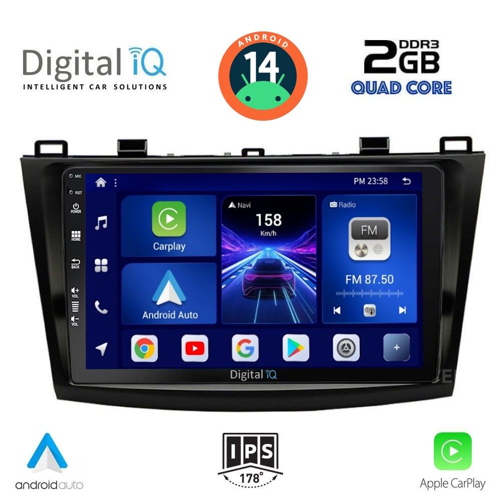 [vc_row equal_height="yes" margin_bottom="40px"][vc_column width="1/5"][vc_single_image source="external_link" external_img_size="170x170" alignment="center" css_animation="slideInDown" custom_src="https://digitaliq.gr/wp-content/uploads/2018/10/icon_cpu_170x170.png"][vc_custom_heading text="MTK 8227L Quad Core 1.3Ghz | 2GB DDR3 RAM | 32GB NAND FLASH STORAGE" font_container="tag:h6|text_align:center" spacing_heading="" spacing_heading_tab="" spacing_heading_mobile="" custom_heading_font_weight="600"][/vc_column][vc_column width="1/5"][vc_single_image source="external_link" external_img_size="170x170" alignment="center" css_animation="slideInDown" custom_src="https://digitaliq.gr/wp-content/uploads/2021/11/icon_android-170x170.png"][vc_custom_heading text="ANDROID 14 FAST LOADING 8sec" font_container="tag:h6|text_align:center" custom_heading_font_weight="600"][/vc_column][vc_column width="1/5"][vc_single_image source="external_link" external_img_size="170x170" alignment="center" css_animation="slideInDown" css="" custom_src="https://digitaliq.gr/wp-content/uploads/2024/10/icon_carplay_android-auto_certified_170.png"][vc_custom_heading text="LICENSED WIRELESS APPLE CARPLAY & ANDROID AUTO" font_container="tag:h6|text_align:center" custom_heading_font_weight="600"][/vc_column][vc_column width="1/5"][vc_single_image source="external_link" external_img_size="170x170" alignment="center" css_animation="slideInDown" custom_src="https://digitaliq.gr/wp-content/uploads/2018/10/eq_icon.png"][vc_custom_heading text="64 BAND EQUALIZER" font_container="tag:h6|text_align:center" custom_heading_font_weight="600"][/vc_column][vc_column width="1/5"][vc_single_image source="external_link" external_img_size="170x170" alignment="center" css_animation="slideInDown" custom_src="https://digitaliq.gr/wp-content/uploads/2018/10/rear_cam_icon.png"][vc_custom_heading text="FRONT & REAR CAMERA SUPPORT" font_container="tag:h6|text_align:center" custom_heading_font_weight="600"][/vc_column][/vc_row][vc_row][vc_column][vc_separator][/vc_column][/vc_row][vc_row][vc_column width="1/2" margin_right="40px" padding_right="40px"][vc_row_inner][vc_column_inner width="1/4" padding_top="20px"][vc_single_image source="external_link" external_img_size="100x61" alignment="center" css_animation="zoomIn" custom_src="https://digitaliq.gr/wp-content/uploads/2018/10/9inch-capacitive-touchscreen.jpg"][/vc_column_inner][vc_column_inner width="3/4"][vc_custom_heading text="9 inches" font_container="tag:h5|text_align:left" custom_heading_font_weight="600"][vc_custom_heading text="Capacitive Touchscreen" font_container="tag:h6|text_align:left" custom_heading_font_weight="500"][vc_column_text]Eυκρινής οθόνη αφής, υψηλής ανάλυσης 1024x600pixels.[/vc_column_text][/vc_column_inner][/vc_row_inner][/vc_column][vc_column width="1/2"][vc_row_inner][vc_column_inner width="1/4" padding_top="20px"][vc_single_image source="external_link" external_img_size="100x61" alignment="center" css_animation="zoomIn" custom_src="https://digitaliq.gr/wp-content/uploads/2021/11/13-band_graphical_eq.jpg"][/vc_column_inner][vc_column_inner width="3/4"][vc_custom_heading text="4x50 WATT" font_container="tag:h5|text_align:left" custom_heading_font_weight="600"][vc_custom_heading text="EQUALIZER with 64 BANDS" font_container="tag:h6|text_align:left" custom_heading_font_weight="500"][vc_column_text]Δυνατός και πλούσιος ήχος με δυνατότητα ρυθμίσεων μέσω του equalizer 16 περιοχών![/vc_column_text][/vc_column_inner][/vc_row_inner][/vc_column][/vc_row][vc_row][vc_column width="1/2"][vc_row_inner][vc_column_inner width="1/4" padding_top="20px"][vc_single_image source="external_link" external_img_size="100x100" alignment="center" css_animation="zoomIn" css="" custom_src="https://digitaliq.gr/wp-content/uploads/2024/10/Apple_CarPlay_Logo_certified_115.jpg"][/vc_column_inner][vc_column_inner width="3/4"][vc_custom_heading text="WIRELESS APPLE CARPLAY" font_container="tag:h5|text_align:left" custom_heading_font_weight="600"][vc_custom_heading text="Licensed & Certified Apple CarPlay" font_container="tag:h6|text_align:left" custom_heading_font_weight="500"][vc_column_text]Το Apple CarPlay & το Android Auto προσφέρει στους χρήστες iPhone® & Android συσκευών έναν απίστευτα διαισθητικό τρόπο να πραγματοποιούν κλήσεις, να χρησιμοποιούν τους Χάρτες, να ακούν μουσική και να έχουν πρόσβαση σε μηνύματα με μια λέξη ή ένα άγγιγμα. Το Apple CarPlay απαιτεί iPhone 5 ή νεότερο με την πιο πρόσφατη έκδοση του iOS. Το Ασύρματο Android Auto θα πρέπει να υποστηρίζεται από τη συσκευή σας.[/vc_column_text][/vc_column_inner][/vc_row_inner][/vc_column][vc_column width="1/2"][vc_row_inner][vc_column_inner width="1/4" padding_top="20px"][vc_single_image source="external_link" external_img_size="100x61" alignment="center" css_animation="zoomIn" css="" custom_src="https://digitaliq.gr/wp-content/uploads/2024/10/Android_auto-Logo_certified_115.jpg"][/vc_column_inner][vc_column_inner width="3/4"][vc_custom_heading text="WIRELESS ANDROID AUTO" font_container="tag:h5|text_align:left" custom_heading_font_weight="600"][vc_custom_heading text="*Εφόσον υποστηρίζεται από την συσκευή σας" font_container="tag:h6|text_align:left"][vc_custom_heading text="Licensed & Certified Android Auto" font_container="tag:h6|text_align:left" custom_heading_font_weight="500"][vc_column_text] Επεκτείνει την πλατφόρμα Android στο αυτοκίνητο με τρόπο που έχει σχεδιαστεί ειδικά για την οδήγηση και σας φέρνει αυτόματα χρήσιμες πληροφορίες και 