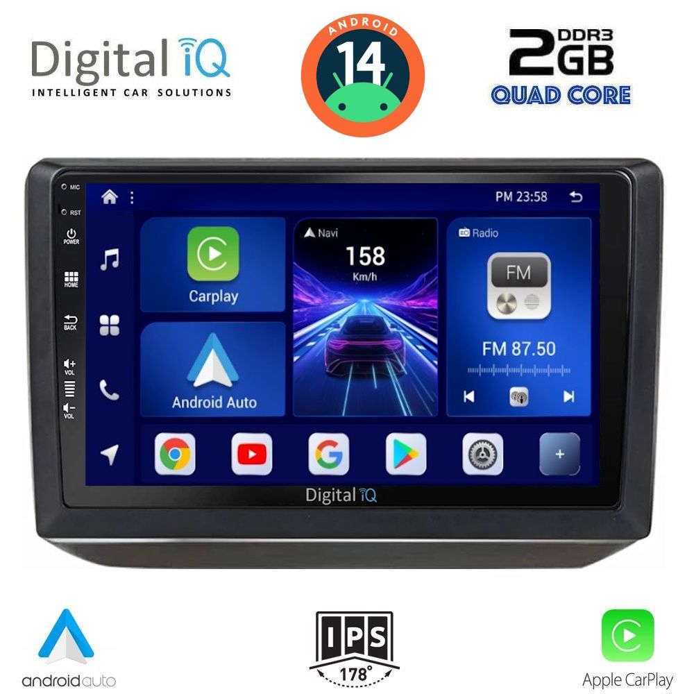[vc_row equal_height="yes" margin_bottom="40px"][vc_column width="1/5"][vc_single_image source="external_link" external_img_size="170x170" alignment="center" css_animation="slideInDown" custom_src="https://digitaliq.gr/wp-content/uploads/2018/10/icon_cpu_170x170.png"][vc_custom_heading text="MTK 8227L Quad Core 1.3Ghz | 2GB DDR3 RAM | 32GB NAND FLASH STORAGE" font_container="tag:h6|text_align:center" custom_heading_font_weight="600"][/vc_column][vc_column width="1/5"][vc_single_image source="external_link" external_img_size="170x170" alignment="center" css_animation="slideInDown" custom_src="https://digitaliq.gr/wp-content/uploads/2021/11/icon_android-170x170.png"][vc_custom_heading text="ANDROID 14 FAST LOADING 8sec" font_container="tag:h6|text_align:center" custom_heading_font_weight="600"][/vc_column][vc_column width="1/5"][vc_single_image source="external_link" external_img_size="170x170" alignment="center" css_animation="slideInDown" css="" custom_src="https://digitaliq.gr/wp-content/uploads/2024/10/icon_carplay_android-auto_certified_170.png"][vc_custom_heading text="LICENSED WIRELESS APPLE CARPLAY & ANDROID AUTO" font_container="tag:h6|text_align:center" custom_heading_font_weight="600"][/vc_column][vc_column width="1/5"][vc_single_image source="external_link" external_img_size="170x170" alignment="center" css_animation="slideInDown" custom_src="https://digitaliq.gr/wp-content/uploads/2018/10/eq_icon.png"][vc_custom_heading text="64 BAND EQUALIZER" font_container="tag:h6|text_align:center" custom_heading_font_weight="600"][/vc_column][vc_column width="1/5"][vc_single_image source="external_link" external_img_size="170x170" alignment="center" css_animation="slideInDown" custom_src="https://digitaliq.gr/wp-content/uploads/2018/10/rear_cam_icon.png"][vc_custom_heading text="FRONT & REAR CAMERA SUPPORT" font_container="tag:h6|text_align:center" custom_heading_font_weight="600"][/vc_column][/vc_row][vc_row][vc_column][vc_separator][/vc_column][/vc_row][vc_row][vc_column width="1/2" margin_right="40px" padding_right="40px"][vc_row_inner][vc_column_inner width="1/4" padding_top="20px"][vc_single_image source="external_link" external_img_size="100x61" alignment="center" css_animation="zoomIn" css="" custom_src="https://digitaliq.gr/wp-content/uploads/2018/10/10inch-capacitive-touchscreen_icon.jpg"][/vc_column_inner][vc_column_inner width="3/4"][vc_custom_heading text="10.1 inches" font_container="tag:h5|text_align:left" spacing_heading="" spacing_heading_tab="" spacing_heading_mobile="" custom_heading_font_weight="600"][vc_custom_heading text="Capacitive Touchscreen" font_container="tag:h6|text_align:left" custom_heading_font_weight="500"][vc_column_text]Eυκρινής οθόνη αφής, υψηλής ανάλυσης 1024x600pixels.[/vc_column_text][/vc_column_inner][/vc_row_inner][/vc_column][vc_column width="1/2"][vc_row_inner][vc_column_inner width="1/4" padding_top="20px"][vc_single_image source="external_link" external_img_size="100x61" alignment="center" css_animation="zoomIn" custom_src="https://digitaliq.gr/wp-content/uploads/2021/11/13-band_graphical_eq.jpg"][/vc_column_inner][vc_column_inner width="3/4"][vc_custom_heading text="4x50 WATT" font_container="tag:h5|text_align:left" custom_heading_font_weight="600"][vc_custom_heading text="EQUALIZER with 64 BANDS" font_container="tag:h6|text_align:left" custom_heading_font_weight="500"][vc_column_text]Δυνατός και πλούσιος ήχος με δυνατότητα ρυθμίσεων μέσω του equalizer 16 περιοχών![/vc_column_text][/vc_column_inner][/vc_row_inner][/vc_column][/vc_row][vc_row][vc_column width="1/2"][vc_row_inner][vc_column_inner width="1/4" padding_top="20px"][vc_single_image source="external_link" external_img_size="100x100" alignment="center" css_animation="zoomIn" css="" custom_src="https://digitaliq.gr/wp-content/uploads/2024/10/Apple_CarPlay_Logo_certified_115.jpg"][/vc_column_inner][vc_column_inner width="3/4"][vc_custom_heading text="WIRELESS APPLE CARPLAY" font_container="tag:h5|text_align:left" custom_heading_font_weight="600"][vc_custom_heading text="Licensed & Certified Apple CarPlay" font_container="tag:h6|text_align:left" custom_heading_font_weight="500"][vc_column_text]Το Apple CarPlay & το Android Auto προσφέρει στους χρήστες iPhone® & Android συσκευών έναν απίστευτα διαισθητικό τρόπο να πραγματοποιούν κλήσεις, να χρησιμοποιούν τους Χάρτες, να ακούν μουσική και να έχουν πρόσβαση σε μηνύματα με μια λέξη ή ένα άγγιγμα. Το Apple CarPlay απαιτεί iPhone 5 ή νεότερο με την πιο πρόσφατη έκδοση του iOS. Το Ασύρματο Android Auto θα πρέπει να υποστηρίζεται από τη συσκευή σας.[/vc_column_text][/vc_column_inner][/vc_row_inner][/vc_column][vc_column width="1/2"][vc_row_inner][vc_column_inner width="1/4" padding_top="20px"][vc_single_image source="external_link" external_img_size="100x61" alignment="center" css_animation="zoomIn" css="" custom_src="https://digitaliq.gr/wp-content/uploads/2024/10/Android_auto-Logo_certified_115.jpg"][/vc_column_inner][vc_column_inner width="3/4"][vc_custom_heading text="WIRELESS ANDROID AUTO" font_container="tag:h5|text_align:left" custom_heading_font_weight="600"][vc_custom_heading text="*Εφόσον υποστηρίζεται από την συσκευή σας" font_container="tag:h6|text_align:left"][vc_custom_heading text="Licensed & Certified Android Auto" font_container="tag:h6|text_align:left" custom_heading_font_weight="500"][vc_column_text] Επεκτείνει την πλατφόρμα Android στο αυτοκίνητο με τρόπο που έχει σχεδιαστεί ειδικά για την οδήγηση και σας φέρνει αυτόματα χρήσιμες πληροφο