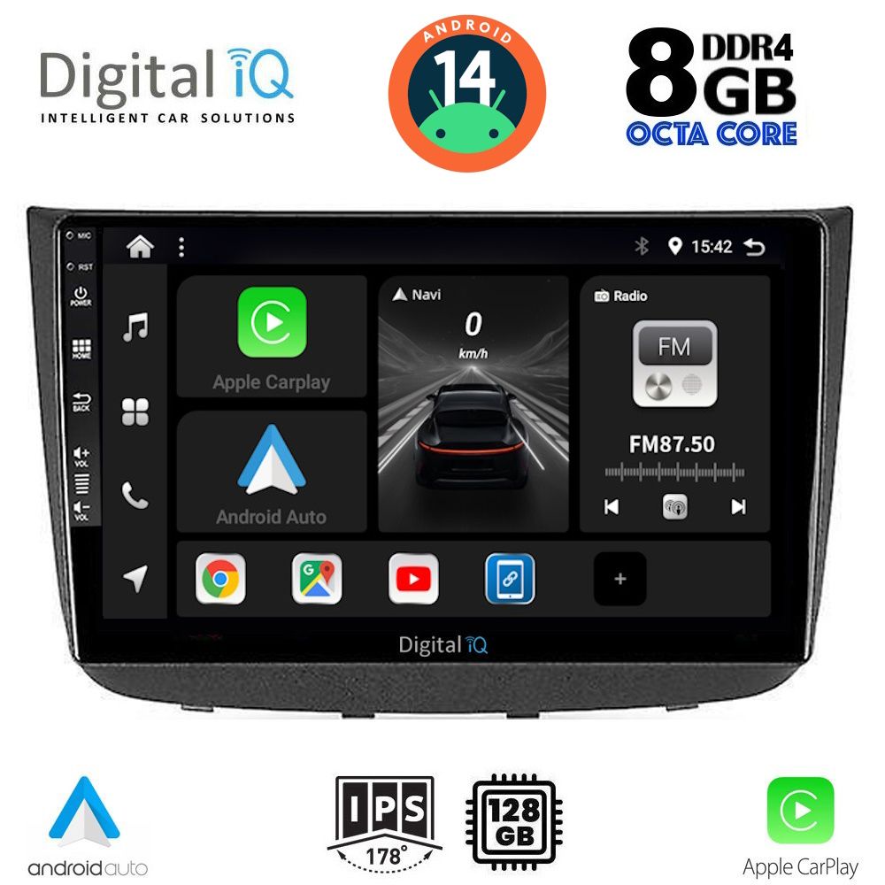 Το Apple CarPlay απαιτεί iPhone 5 ή νεότερο με την πιο πρόσφατη έκδοση του iOS.[/vc_column_text][/vc_column_inner][/vc_row_inner][/vc_column][vc_column width="1/2"][vc_row_inner][vc_column_inner width="1/4" padding_top="20px"][vc_single_image source="external_link" external_img_size="115x32" alignment="center" css_animation="zoomIn" custom_src="https://digitaliq.gr/wp-content/uploads/2024/10/Android_auto-Logo_certified_115.jpg"][/vc_column_inner][vc_column_inner width="3/4"][vc_custom_heading text="WIRELESS ANDROID AUTO" font_container="tag:h5|text_align:left" custom_heading_font_weight="600"][vc_custom_heading text="Licensed & Certified Android Auto" font_container="tag:h6|text_align:left" custom_heading_font_weight="500"][vc_column_text]Επεκτείνει την πλατφόρμα Android στο αυτοκίνητο με τρόπο που έχει σχεδιαστεί ειδικά για την οδήγηση και σας φέρνει αυτόματα χρήσιμες πληροφορίες και τις οργανώνει σε απλές κάρτες που εμφανίζονται ακριβώς όταν τις χρειάζονται. Έχει σχεδιαστεί για να ελαχιστοποιεί την απόσπαση της προσοχής, ώστε να μπορείτε να παραμένετε συγκεντρωμένοι στο δρόμο μπροστά σας.