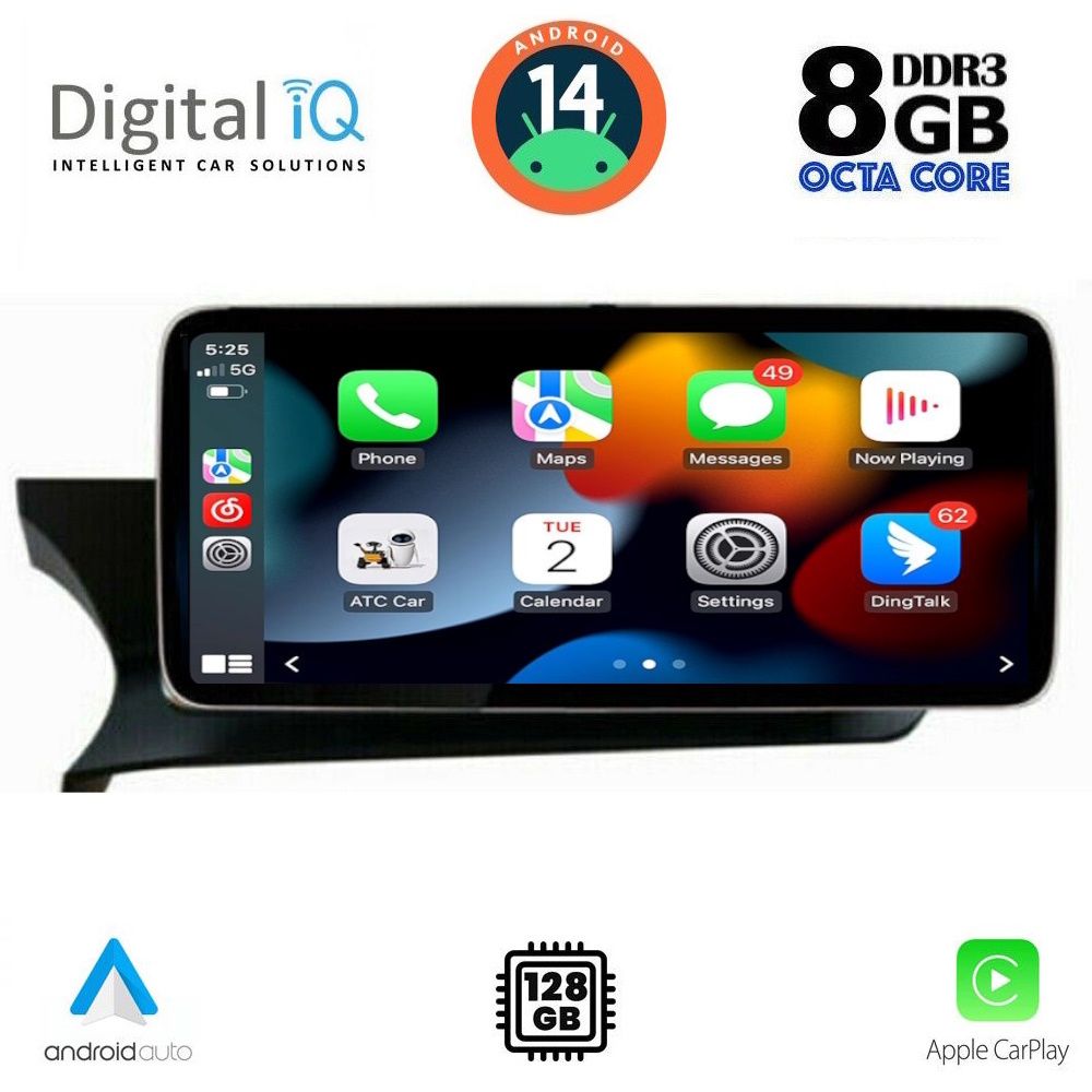 2x CORTEX-A75 & 6x CORTEX-A55" font_container="tag:h6|text_align:center" custom_heading_font_weight="600"][/vc_column][vc_column width="1/5"][vc_single_image source="external_link" external_img_size="170x170" alignment="center" css_animation="slideInDown" custom_src="https://digitaliq.gr/wp-content/uploads/2018/10/icon_memory_170x170.png"][vc_custom_heading text="RAM: 8GB LPDDR4x | NAND FLASH: 128GB" font_container="tag:h6|text_align:center" custom_heading_font_weight="600"][/vc_column][vc_column width="1/5"][vc_single_image source="external_link" external_img_size="170x170" alignment="center" css_animation="slideInDown" custom_src="https://digitaliq.gr/wp-content/uploads/2021/11/icon_android-170x170.png"][vc_custom_heading text="ANDROID 14" font_container="tag:h6|text_align:center" spacing_heading="" spacing_heading_tab="" spacing_heading_mobile="" custom_heading_font_weight="600"][/vc_column][vc_column width="1/5"][vc_single_image source="external_link" external_img_size="170x170" alignment="center" css_animation="slideInDown" custom_src="https://digitaliq.gr/wp-content/uploads/2022/01/icon_carplay_android-auto_170.png"][vc_custom_heading text="WIRELESS CAR PLAY & WIRELESS ANDROID AUTO" font_container="tag:h6|text_align:center" spacing_heading="" spacing_heading_tab="" spacing_heading_mobile="" custom_heading_font_weight="600"][/vc_column][vc_column width="1/5"][vc_single_image source="external_link" external_img_size="170x170" alignment="center" css_animation="slideInDown" custom_src="https://digitaliq.gr/wp-content/uploads/2018/10/rear_cam_icon.png"][vc_custom_heading text="SUPPORTS REAR CAMERA with REVERSE TRAJECTORY & PARKING SENSOR" font_container="tag:h6|text_align:center" custom_heading_font_weight="600"][/vc_column][/vc_row][vc_row][vc_column][vc_separator][/vc_column][/vc_row][vc_row][vc_column width="1/2" margin_right="40px" padding_right="40px"][vc_row_inner][vc_column_inner width="1/4" padding_top="20px"][vc_single_image source="external_link" external_img_size="100x61" alignment="center" css_animation="zoomIn" custom_src="https://digitaliq.gr/wp-content/uploads/2022/03/12_3inch-capacitive-touchscreen.jpg"][/vc_column_inner][vc_column_inner width="3/4"][vc_custom_heading text="TABLET 12.3 inches" font_container="tag:h5|text_align:left" custom_heading_font_weight="600"][vc_custom_heading text="Full HD Capacitive Touchscreen" font_container="tag:h6|text_align:left" custom_heading_font_weight="500"][vc_column_text]Eυκρινής οθόνη αφής, υψηλής ανάλυσης 1920x720pixels.[/vc_column_text][/vc_column_inner][/vc_row_inner][/vc_column][vc_column width="1/2"][vc_row_inner][vc_column_inner width="1/4" padding_top="20px"][vc_single_image source="external_link" external_img_size="100x100" alignment="center" css_animation="zoomIn" custom_src="https://digitaliq.gr/wp-content/uploads/2022/03/clima_100x100.jpg"][/vc_column_inner][vc_column_inner width="3/4"][vc_custom_heading text="CAR CLIMATE CONTROL" font_container="tag:h5|text_align:left" custom_heading_font_weight="600"][vc_column_text]Υποστηρίζει την προβολή του συστήματος κλιματισμού του αυτοκινήτου σας! (Aναλόγως την έκδοση)[/vc_column_text][/vc_column_inner][/vc_row_inner][/vc_column][/vc_row][vc_row][vc_column width="1/2"][vc_row_inner][vc_column_inner width="1/4" padding_top="20px"][vc_single_image source="external_link" external_img_size="100x100" alignment="center" css_animation="zoomIn" custom_src="https://digitaliq.gr/wp-content/uploads/2021/11/CarPlay-icon.jpg"][/vc_column_inner][vc_column_inner width="3/4"][vc_custom_heading text="WIRELESS APPLE CARPLAY" font_container="tag:h5|text_align:left" custom_heading_font_weight="600"][vc_column_text]