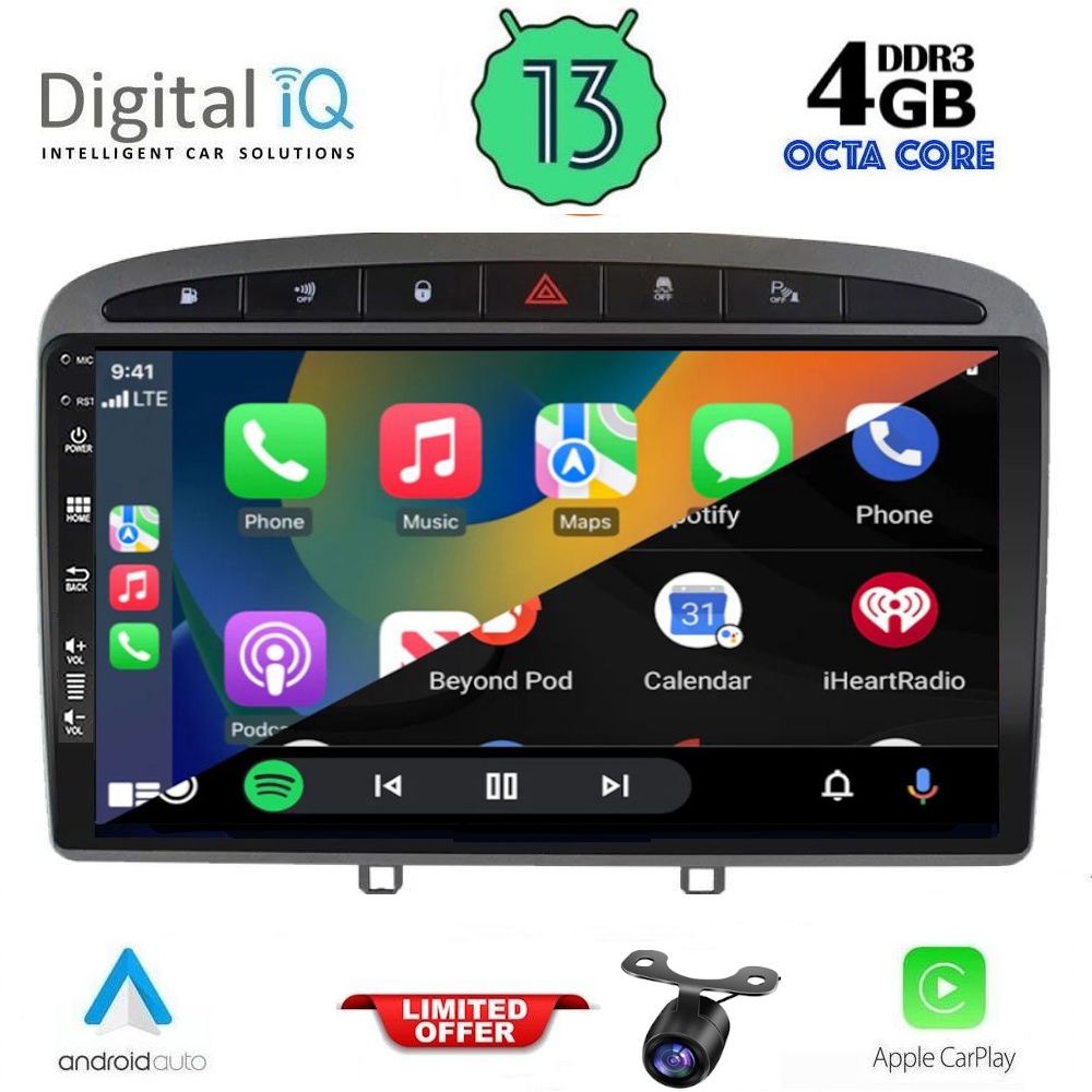 MULTIMEDIA TABLET for PEUGEOT 308 mod. 2007-2012 ANDROID 13 | Ultra Fast Loading 2sec CPU : B200 CORTEX A53 | 64bit | 8CORE | 2.5Ghz RAM : 4GB DDR4 | INTERNAL STORAGE : 64GB NAND FLASH SUPPORTS STEERING WHEEL COMMANDS Orig. Parking with CANBUS *Διατίθεται σε Ανθρακί & μαύρο γυαλιστερό