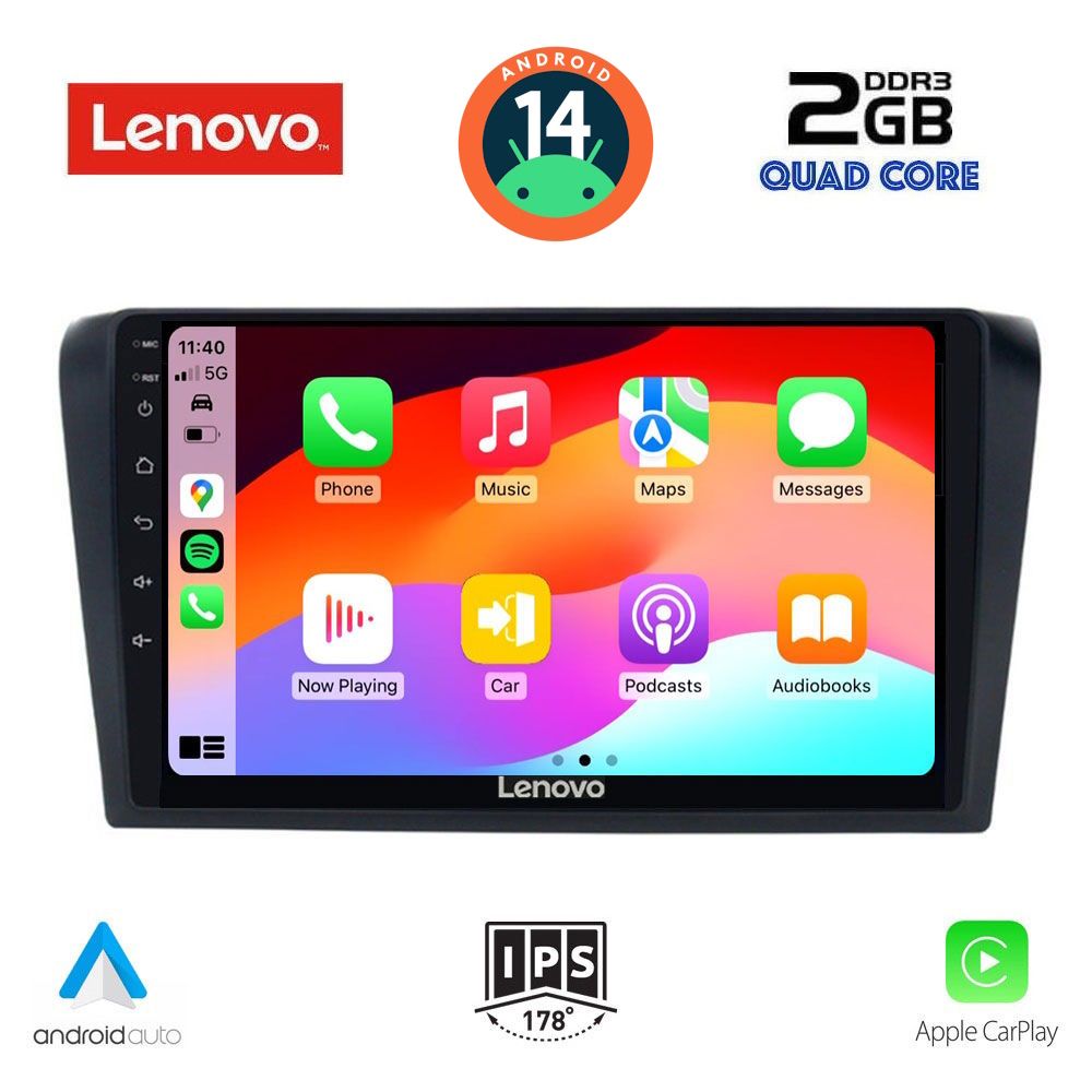 TABLET for MAZDA 3 mod. 2003-2008 ANDROID 14 | Fast Loading 4sec CPU : A133 | CORTEX A53 | QUAD CORE | 1.6GHz RAM : 2GB DDR3 | NAND FLASH : 64GB SUPPORTS STEERING WHEEL COMMANDS with CANBUS *'Ελεγχος συμβατότητας βαση ραδίου για τη λειτουργεία του εργοστασιακού display clima