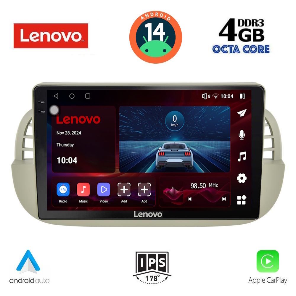 MULTIMEDIA TABLET for FIAT 500 mod. 2007-2015 ANDROID 14 | Ultra Fast Loading 2sec | Ultra Fast Loading 2sec CPU : QUALCOMM SNAPDRAGON 450 | 64Bit | 8CORE | 2.2Ghz RAM : 4GB DDR3 | INTERNAL STORAGE : 64GB NAND FLASH SUPPORTS STEERING WHEEL COMMANDS with CANBUS *Διατίθεται σε μαύρο και εκρού χρώμα **Δεν υποστηρίζει blue and me