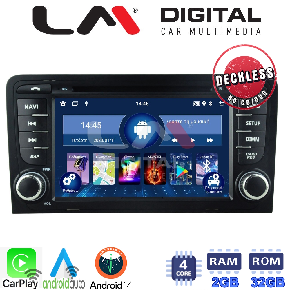 LM Digital - LM V4049 GPS Οθόνη OEM Multimedia Αυτοκινήτου για Audi A3 2003>2012 (CarPlay/AndroidAuto/BT/GPS/WIFI/GPRS)