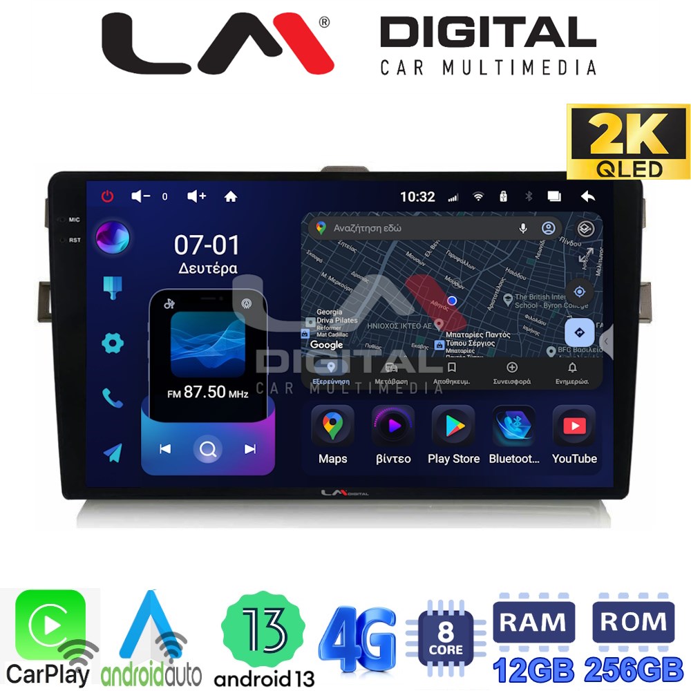 LM ZS8028B GPS Οθόνη OEM Multimedia Αυτοκινήτου για Toyota Auris 2007 > 2012 (CarPlay/AndroidAuto/BT/GPS/WIFI/GPRS)