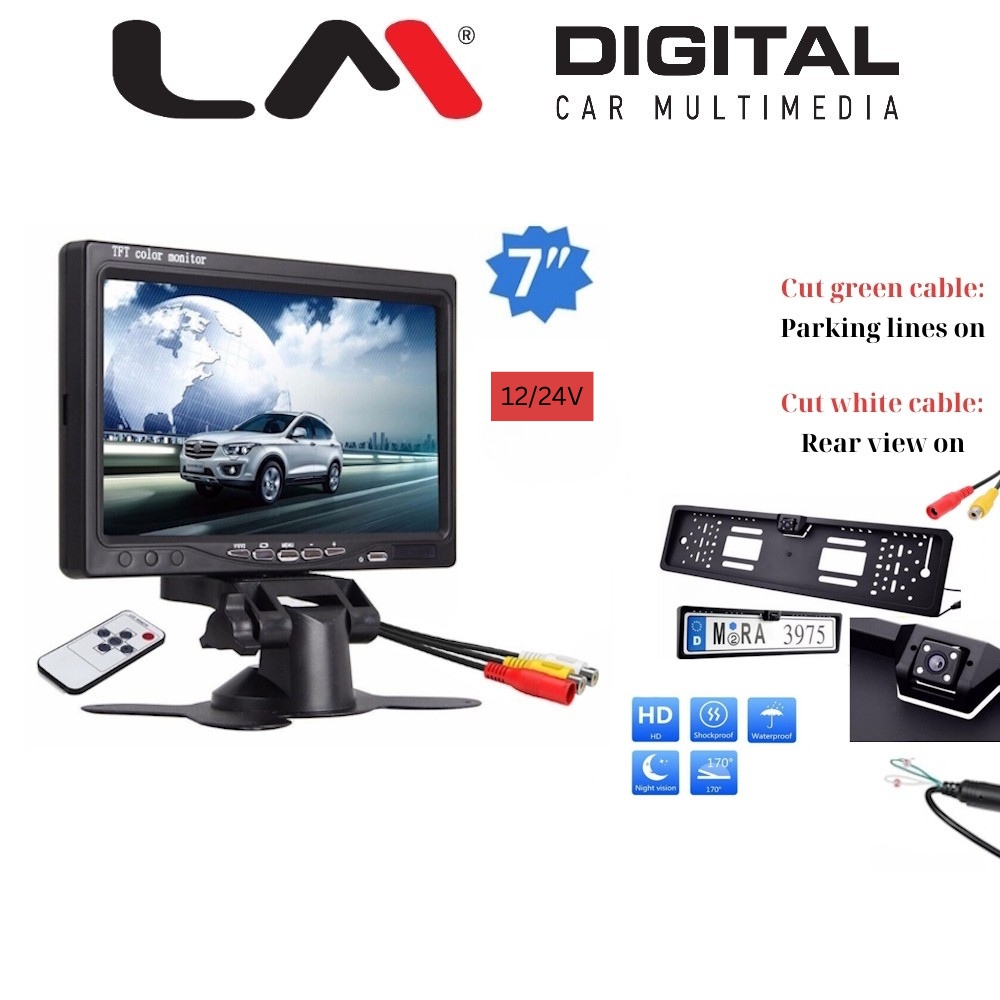 7 i MONITOR 12V & καμερα πινακιδος (σετ)