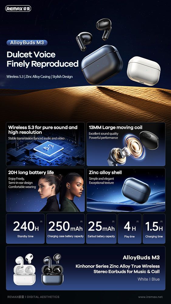 REMAX AlloyBuds M3 True Wireless Stereo Earbuds (WHITE)