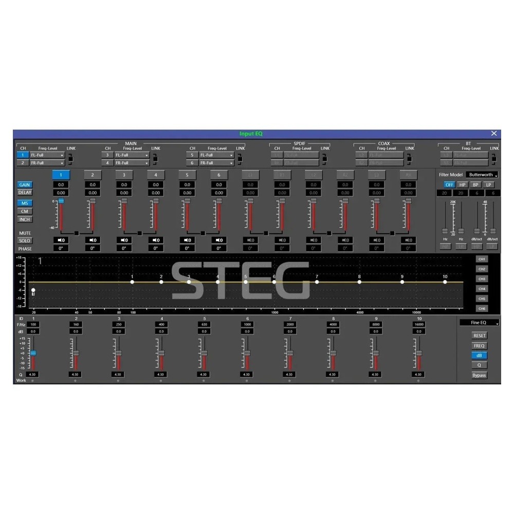 - INPUT mixer, EQ with AP filter, time delay